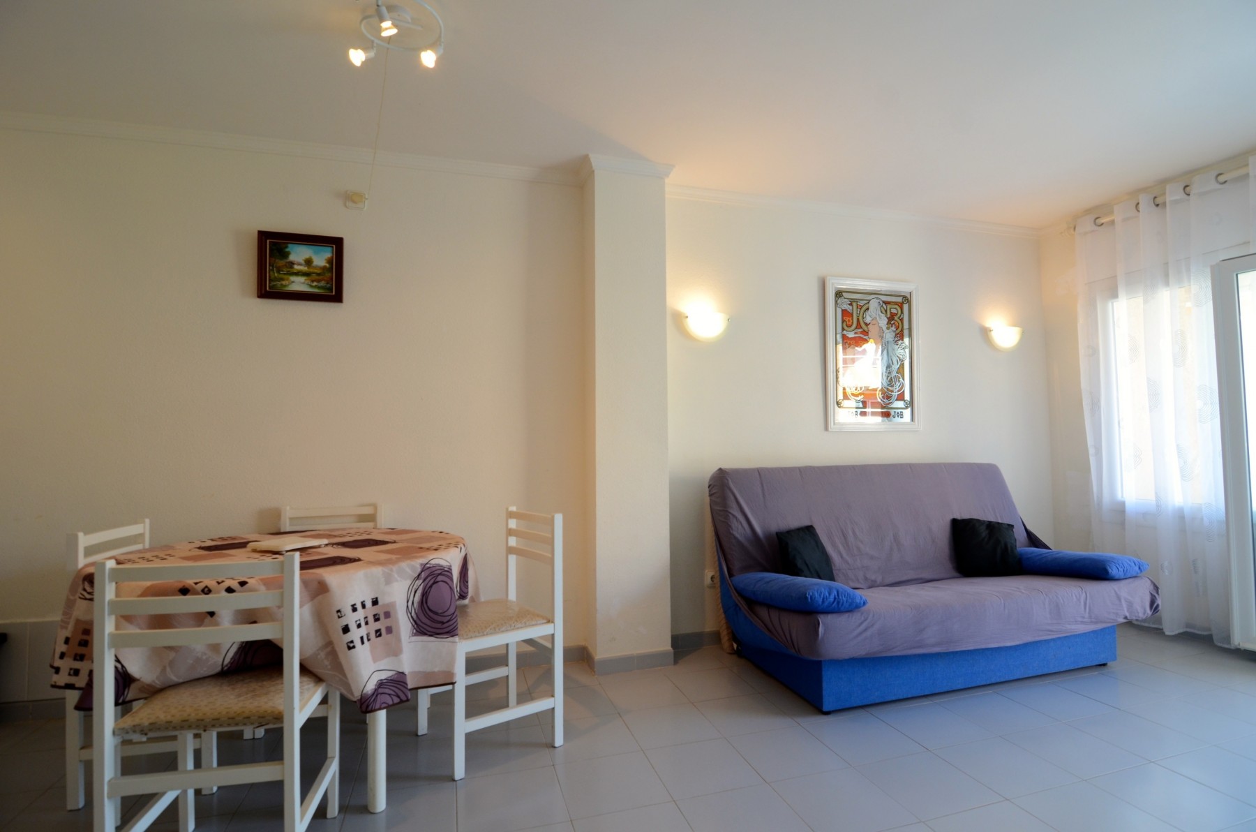En el complejo Rocamaura se alquila para las vacaciones este apartamento de 1 dormitorio con una litera doble y una cama individual con capacidad para 3 personas.Salón comedor con sofà y TV, pequeña cocina independiente y baño con ducha.