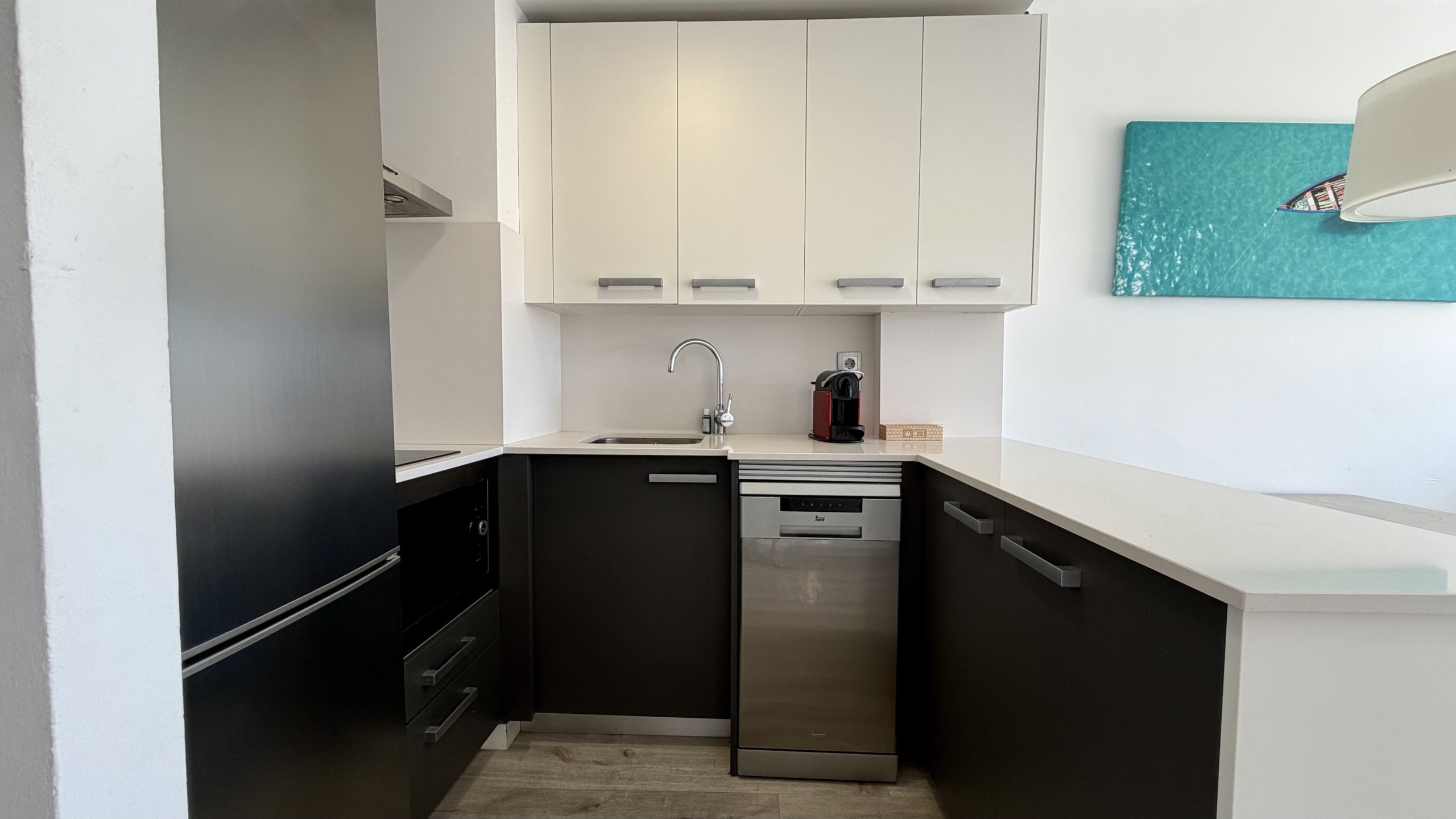 La cocina americana totalmente equipada es uno de los puntos fuertes del apartamento. Cuenta con electrodomésticos modernos como nevera, congelador, lavavajillas, horno, tostadora y máquina de café. Además, encontrarás todos los utensilios de cocina necesarios para preparar deliciosas comidas en familia.