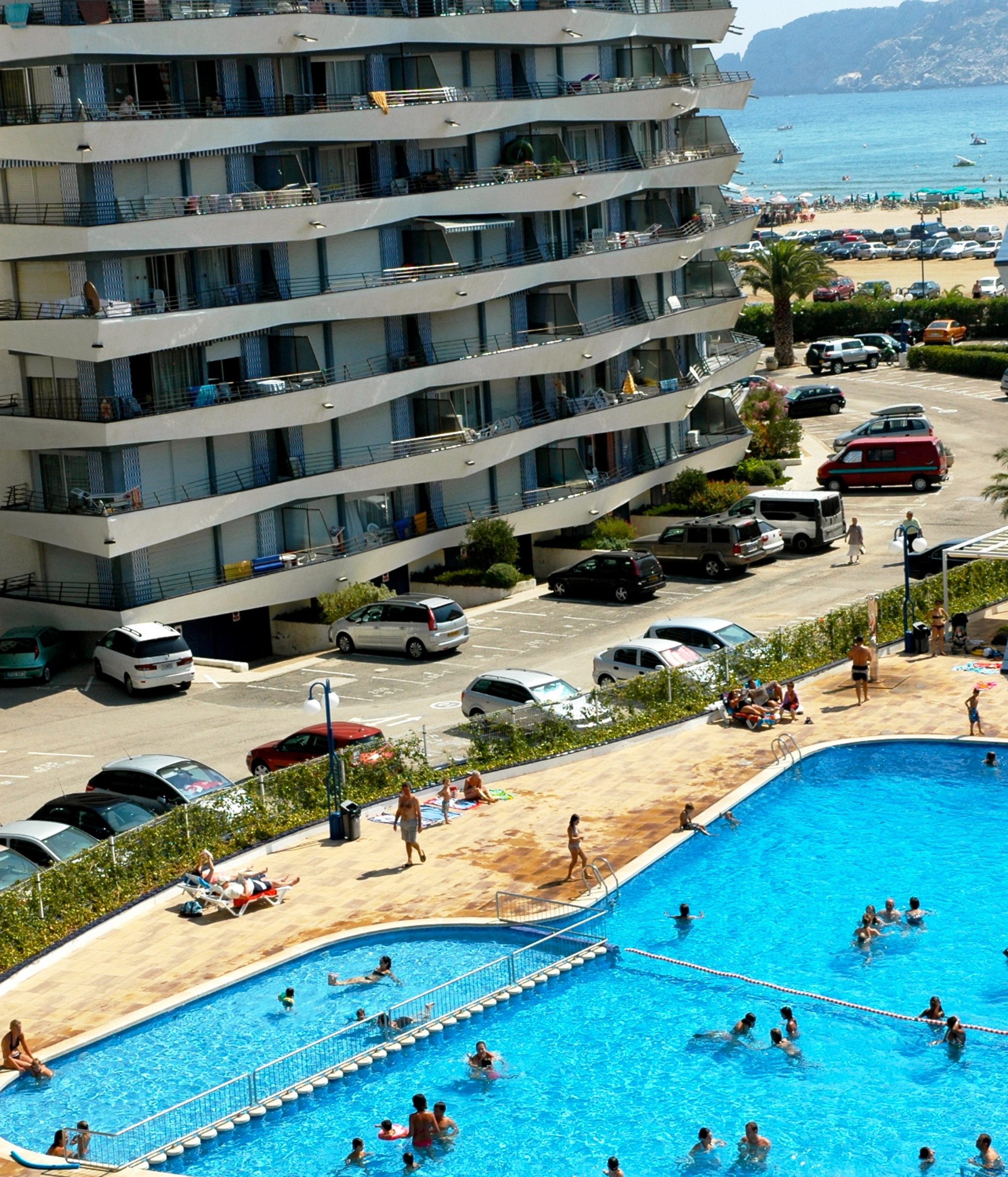Date un chapuzón en la piscina comunitaria, luego escucha el canto de la brisa marina en un paseo de 25 metros hasta la playa de arena de Els Griells y sumérgete en las aguas cristalinas del Mediterráneo.