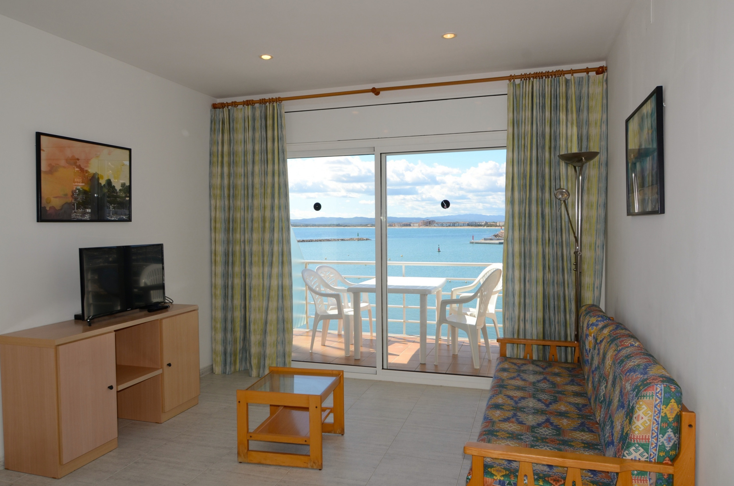 El apartamento tiene una gran terraza con una inmejorable vista del todo el complejo Rocamaura, con la piscina a tus pies y las Islas Medes de fondo.