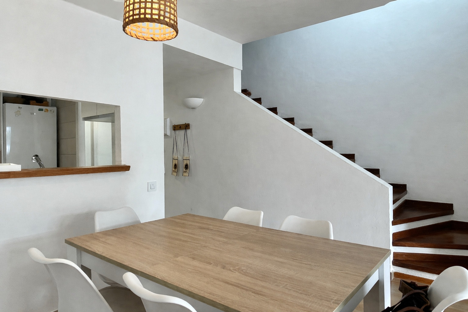 La vivienda dispone de 3 dormitorios con una distribución de camas práctica y versátil: 2 literas para los más pequeños, 1 cama de matrimonio para los padres y 2 camas individuales adicionales para adaptarse a cada familia. Además, cuenta con 3 baños (dos con ducha y uno con bañera), ideal para agilizar las rutinas de mañana y volver de la playa sin colas.