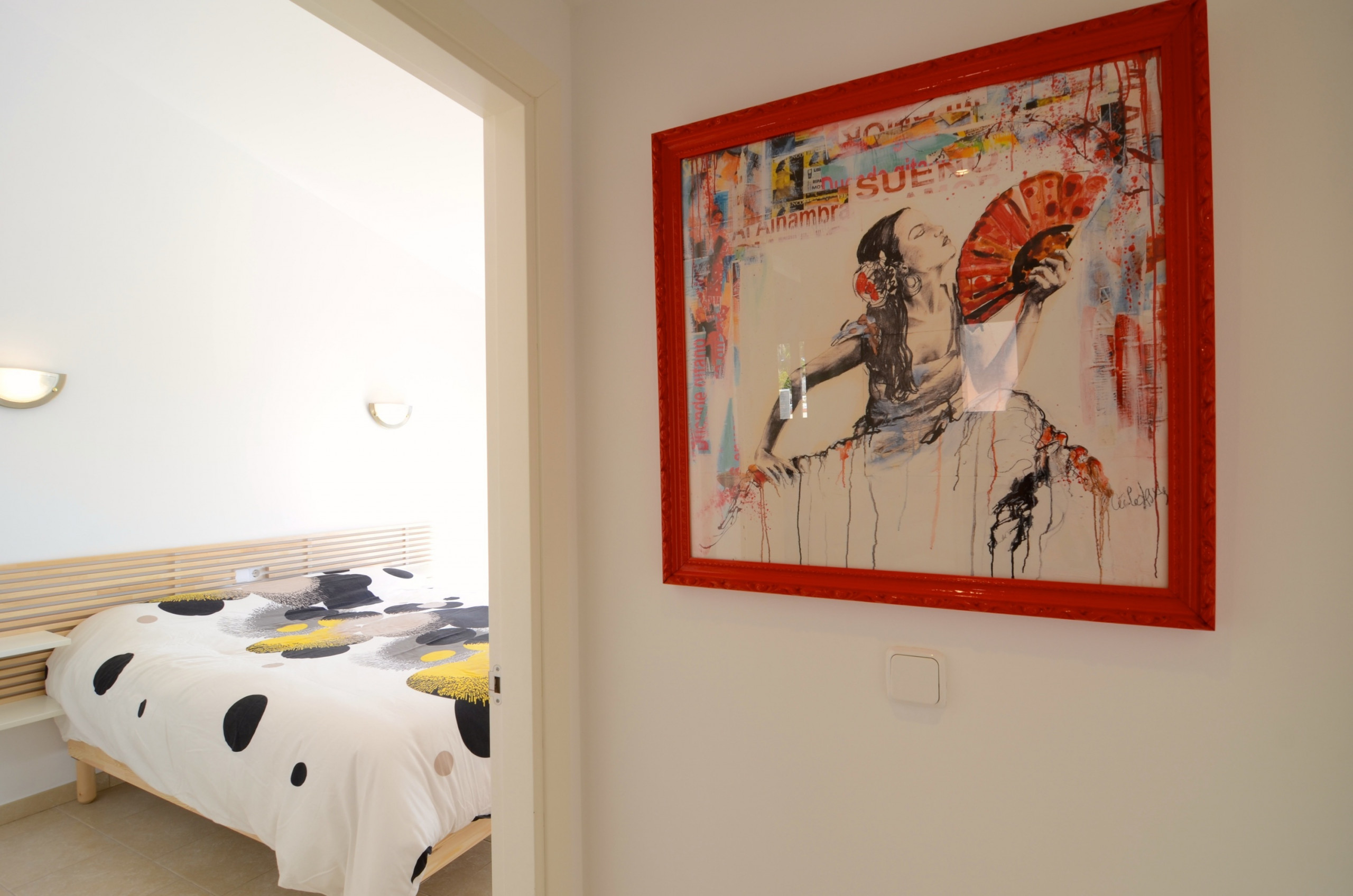 La casa adosada dispone de 3 amplios dormitorios (2 camas king size y uno con 2 camas individuales) y un cuarto de baño con bañera. Dos dormitorios dan acceso a una gran terraza solarium donde podrá disfrutar de las vistas.