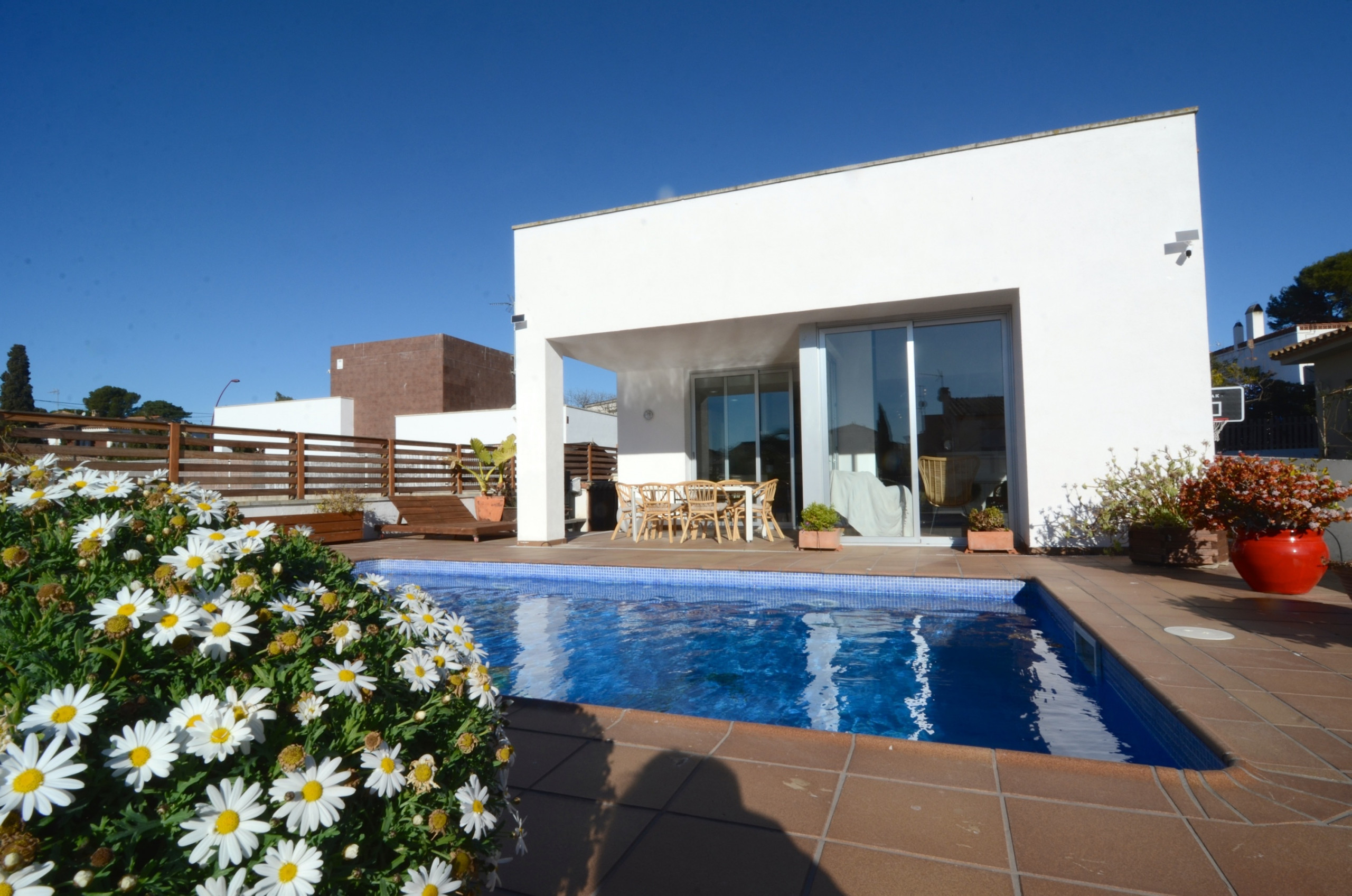 Entre sus características destacan una chimenea para noches frías, plancha y un jardín privado con barbacoa y muebles de exterior. El terreno de 467 metros cuadrados está completamente vallado, ideal para familias con niños que busquen privacidad y seguridad.