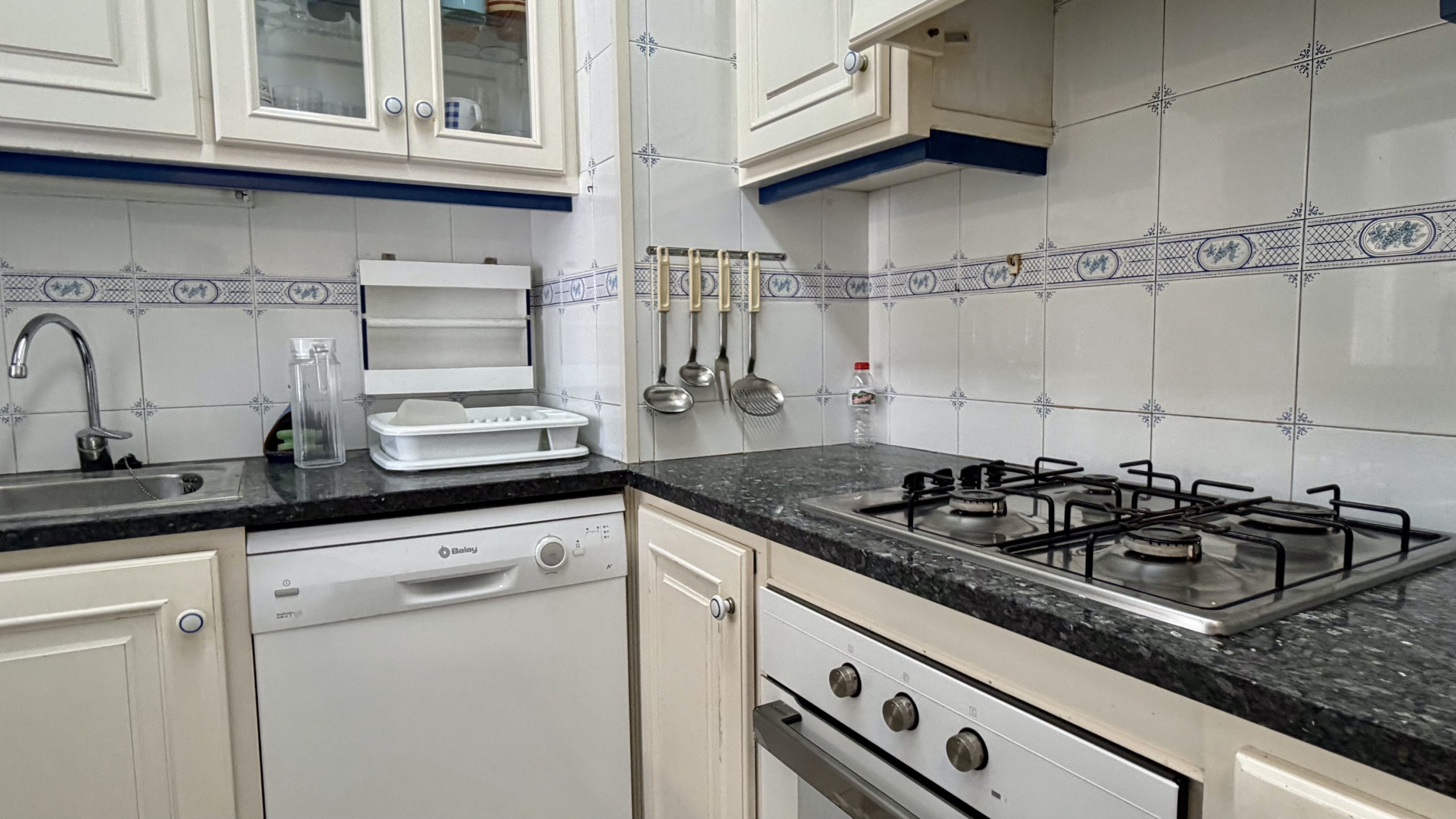L'apartament compta amb 3 dormitoris ben distribuïts: un dormitori amb llit de matrimoni i dos dormitoris amb llits individuals, garantint un descans còmode per a tots els hostes. Disposa d'un complet bany amb banyera, perfecte per relaxar-se després d'un dia de platja.