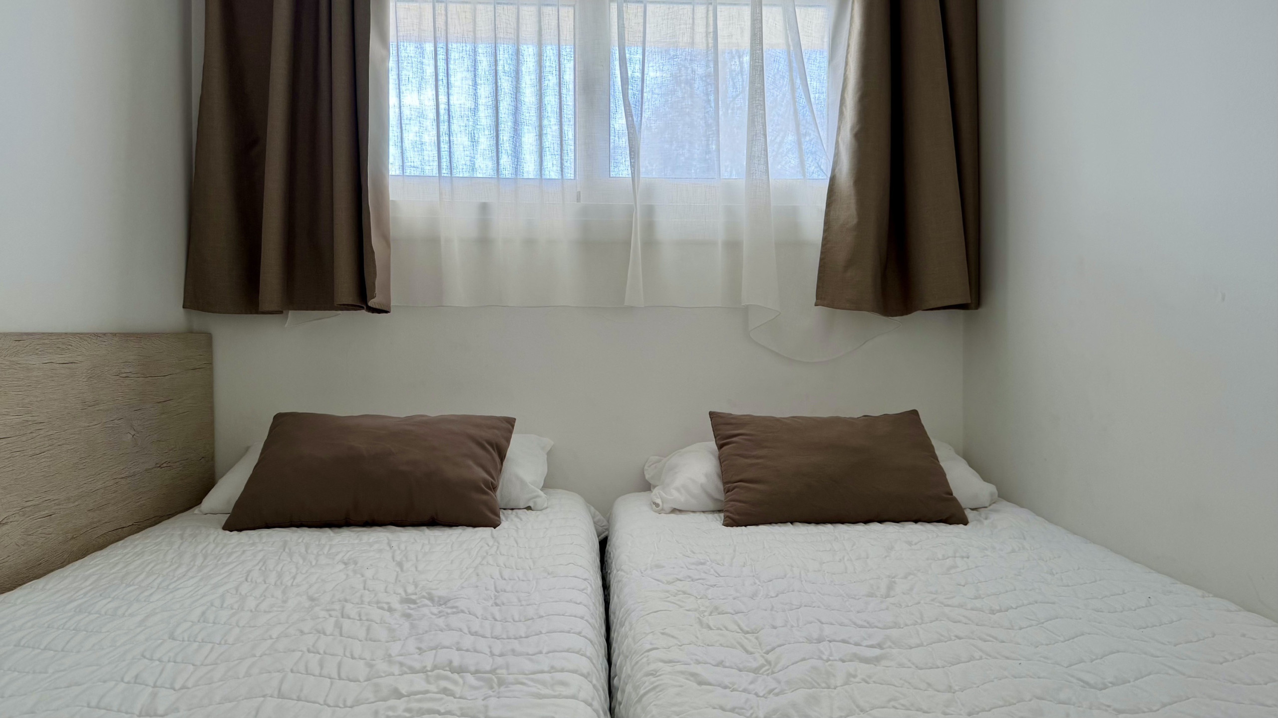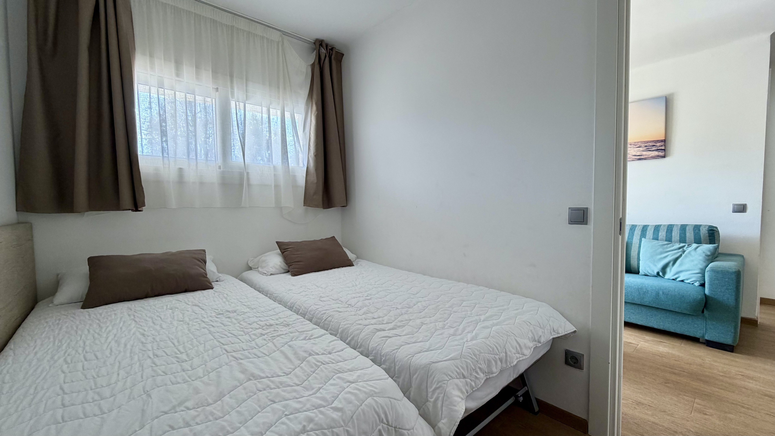 Els 5 espais per dormir inclouen 1 sofà llit i 4 llits individuals, proporcionant flexibilitat per a famílies amb nens. L'apartament està climatitzat amb aire condicionat i bomba de calor per garantir la comoditat en qualsevol època de l'any.
