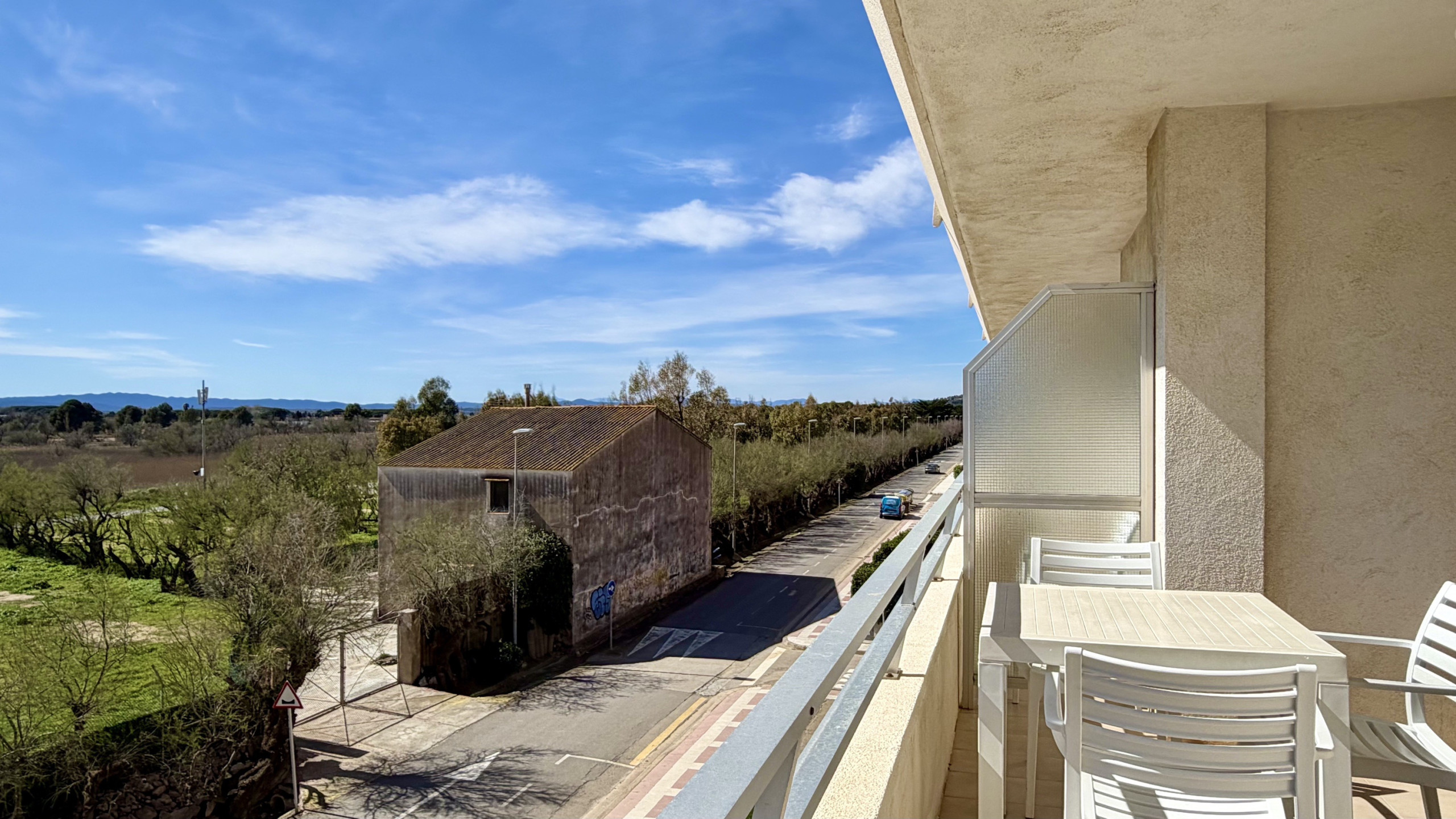 L'apartament té una gran terrassa amb una vista immillorable de tot el complex Rocamaura, amb la piscina als teus peus i les Illes Medes de fons.