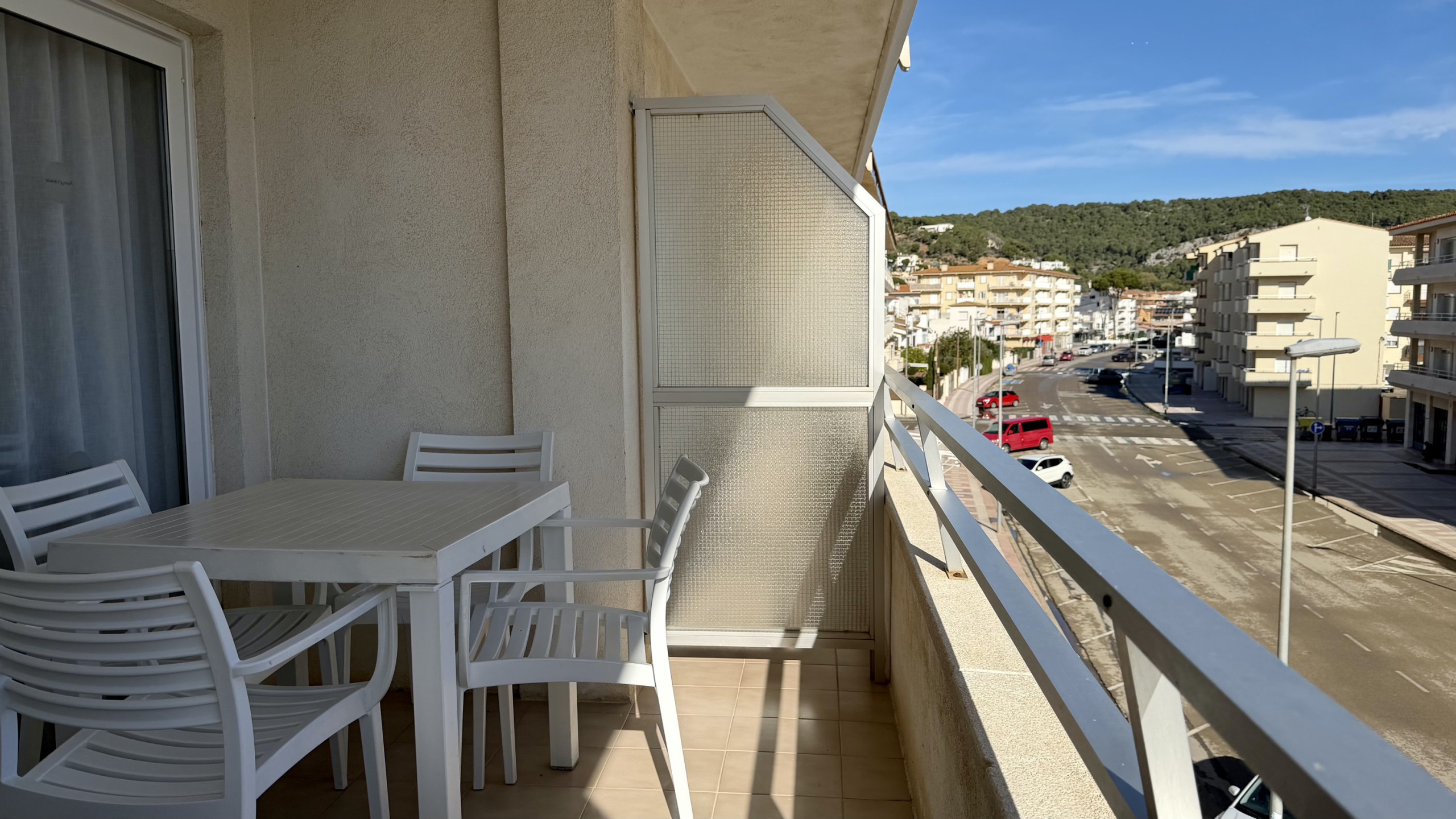 L'apartament té una gran terrassa amb una vista immillorable de tot el complex Rocamaura, amb la piscina als teus peus i les Illes Medes de fons.