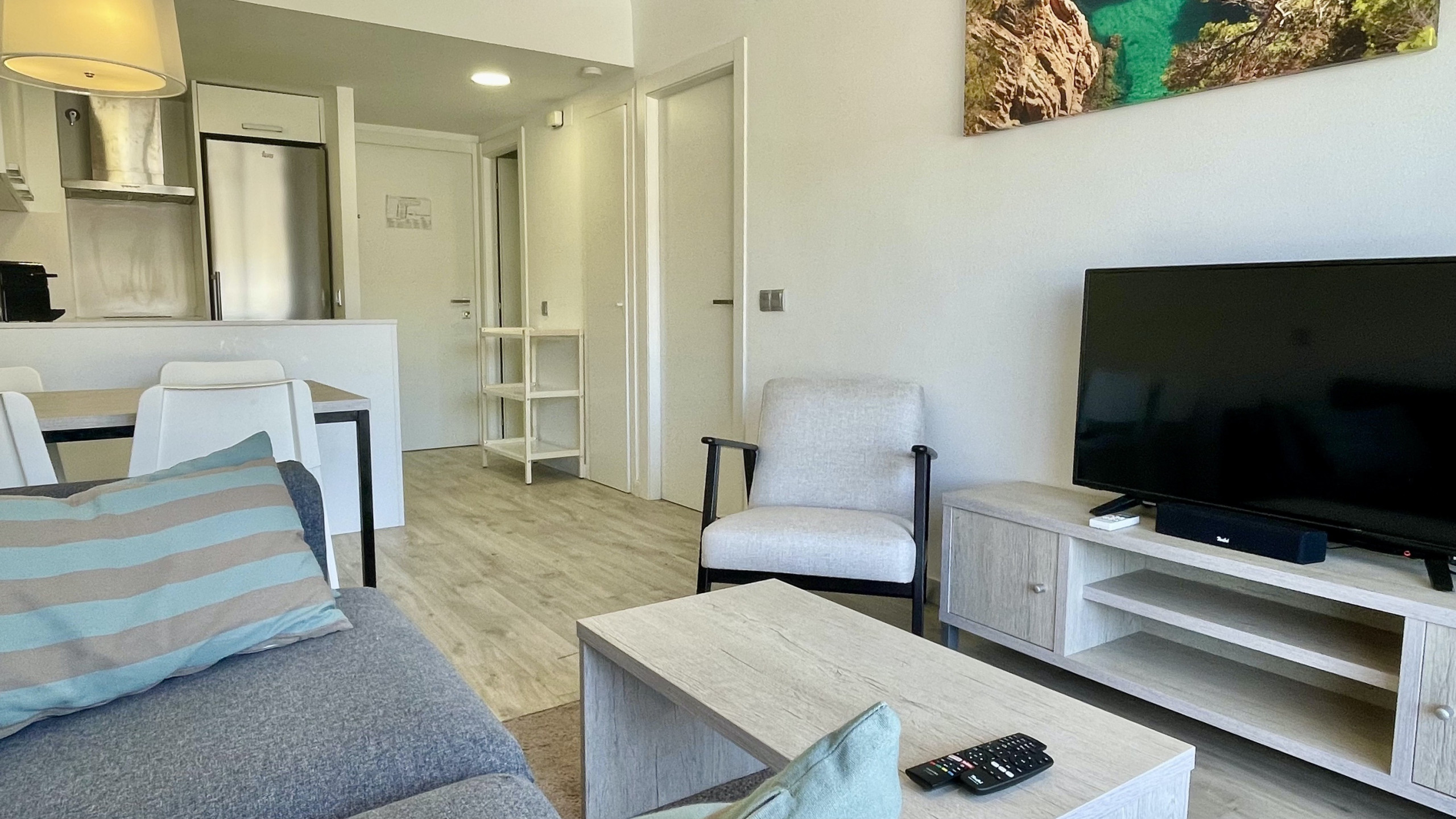 En el complex Rocamaura, aquest apartament d'una habitació està disponible per llogar per a les vacances, amb un llit superposat doble i un llit individual amb capacitat per a 3 persones. Sala d'estar-menjador amb sofà i TV, petita cuina independent i bany amb dutxa.