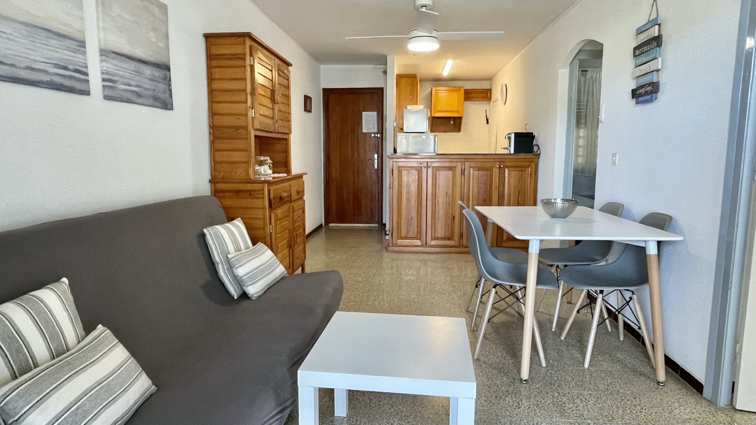 Benvingut a la teva retirada al mar de l'Estartit! Aquest apartament de 2 habitacions, amb capacitat per a 5 persones, ofereix en els seus 50 m² un ambient acollidor i familiar. Situat just al costat de la platja, ofereix vistes al Mediterrani.