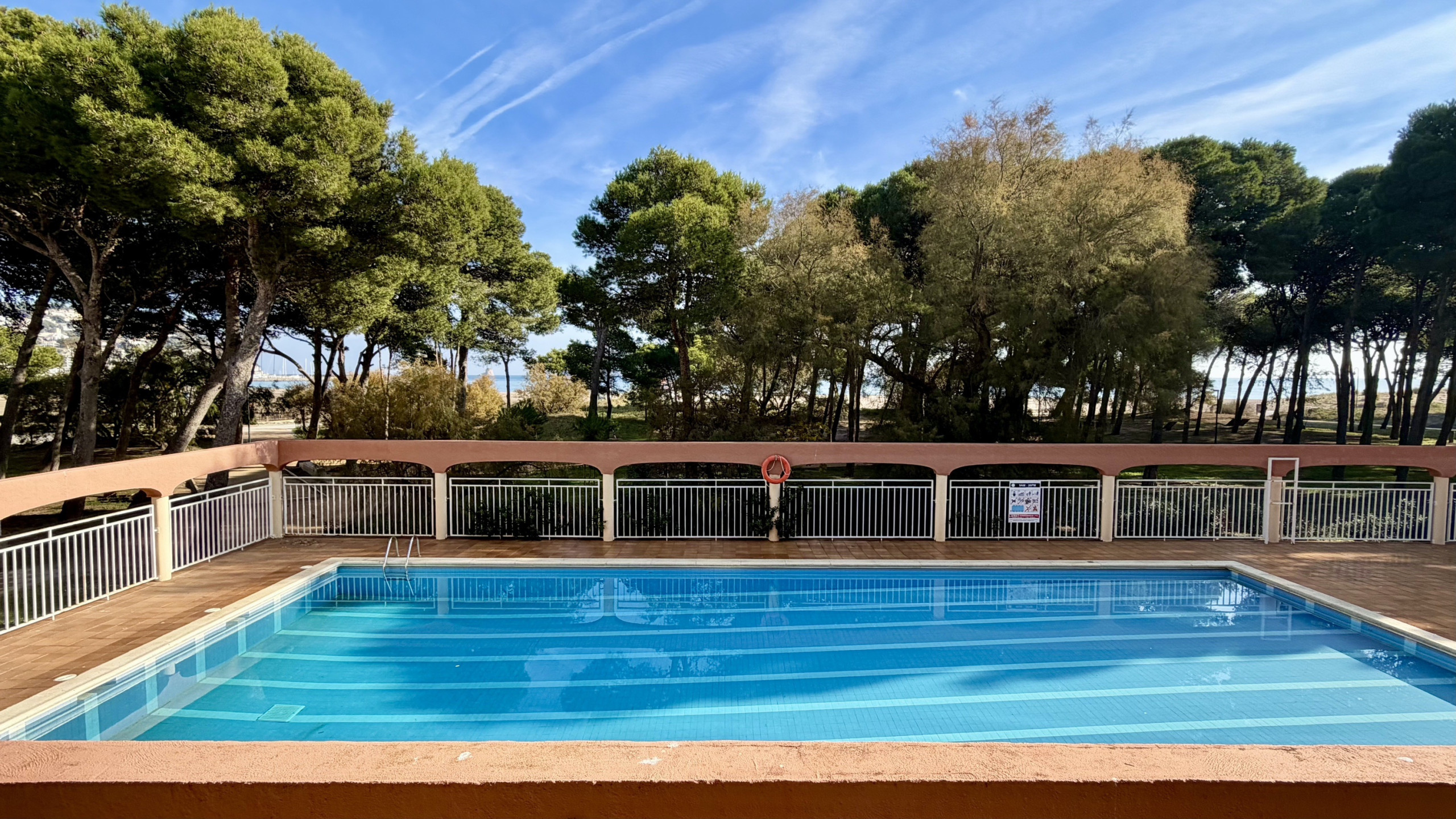L'apartament té una gran terrassa amb una vista immillorable de tot el complex Rocamaura, amb la piscina als teus peus i les Illes Medes de fons.
