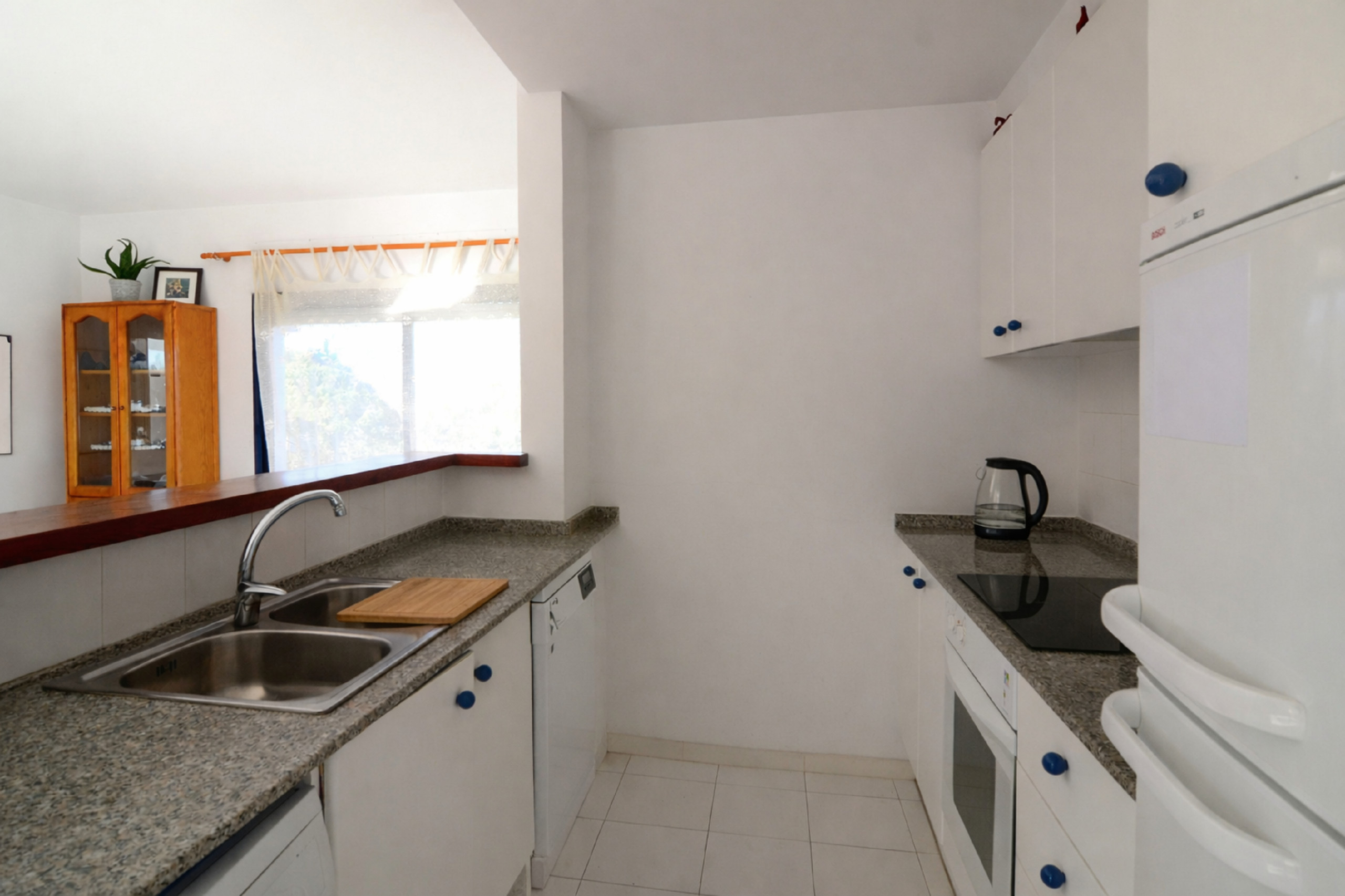 La cuina americana, eléctrica, està equipada amb nevera, forn, rentaplats, vaixella/coberteria, estris/cuina, cafetera i torradora.