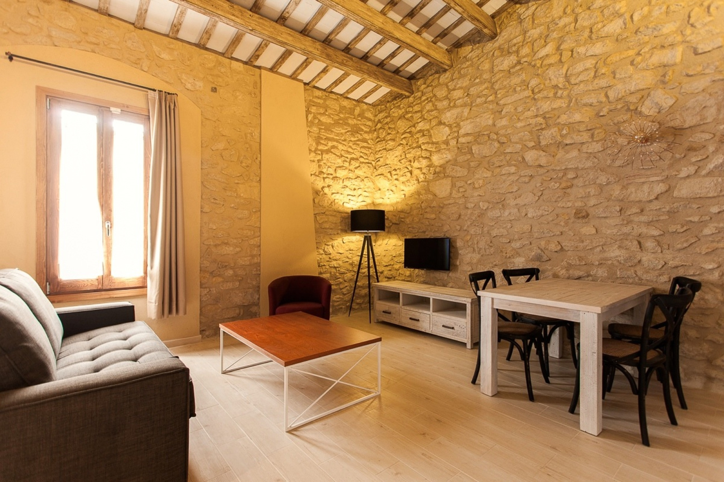 És la rehabilitació d’una antiga casa adaptada a les necessitats actuals. Tenen aire condicionat, Wifi, zona d’estar amb un còmode sofà llit a la sala, TV de pantalla plana , cuina amb nevera, microones, cafetera, vitroceràmica, assecadora de cabells i rentadora/assecadora.