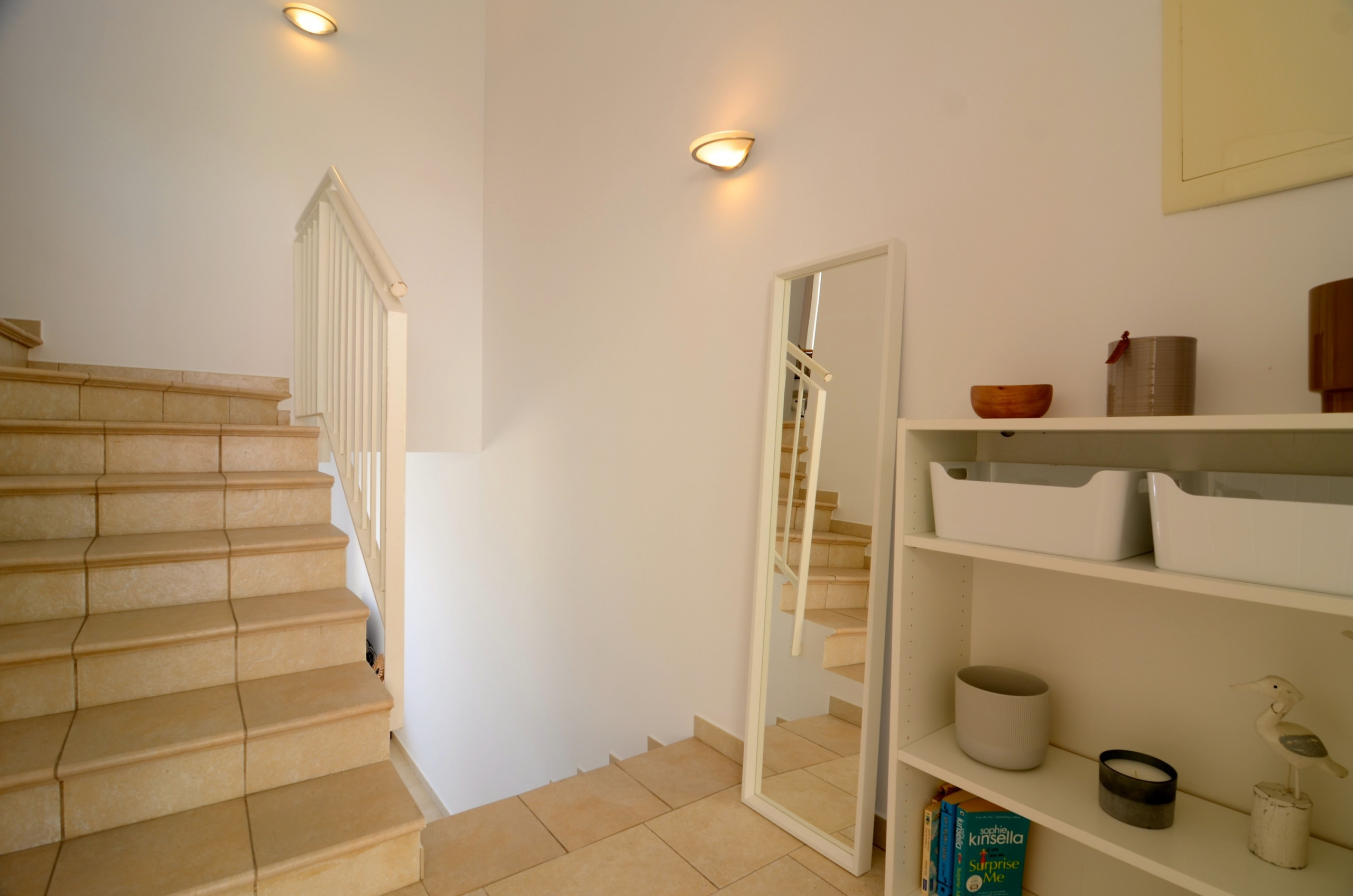 Al nivell principal, trobareu una sala d'estar (TV i WIFI), un menjador, una àmplia cuina ben equipada amb rentaplats, una cambra de dutxa i WC i una terrassa on podreu compartir els àpats mentre gaudiu de les vistes al mar.
