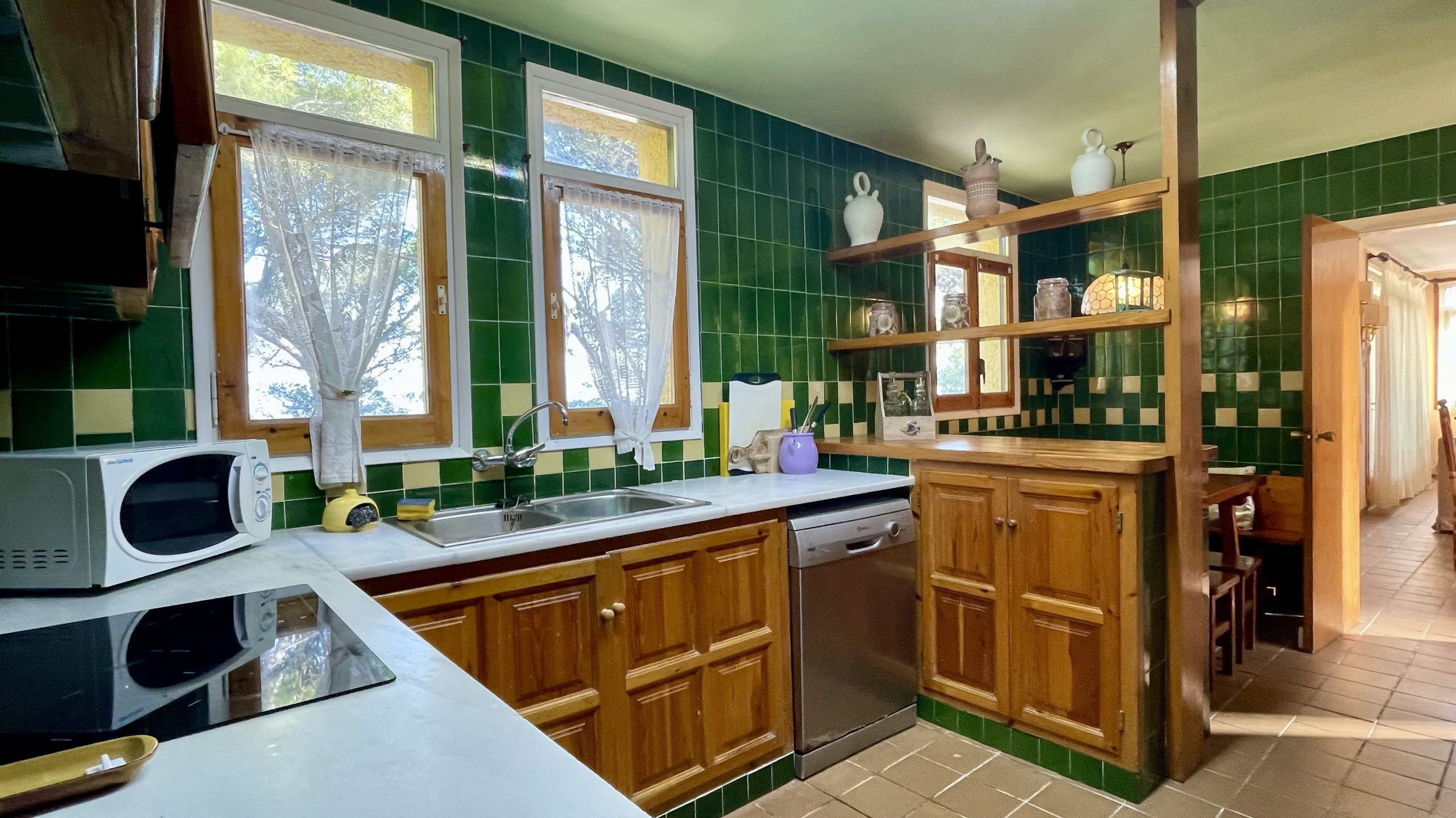La casa combina a la perfecció l'autenticitat de l'estil mediterrani. El gran saló menjador, amb accés a dues terrasses, t'ofereix un espai acollidor per relaxar-te després d'un dia d'exploració.