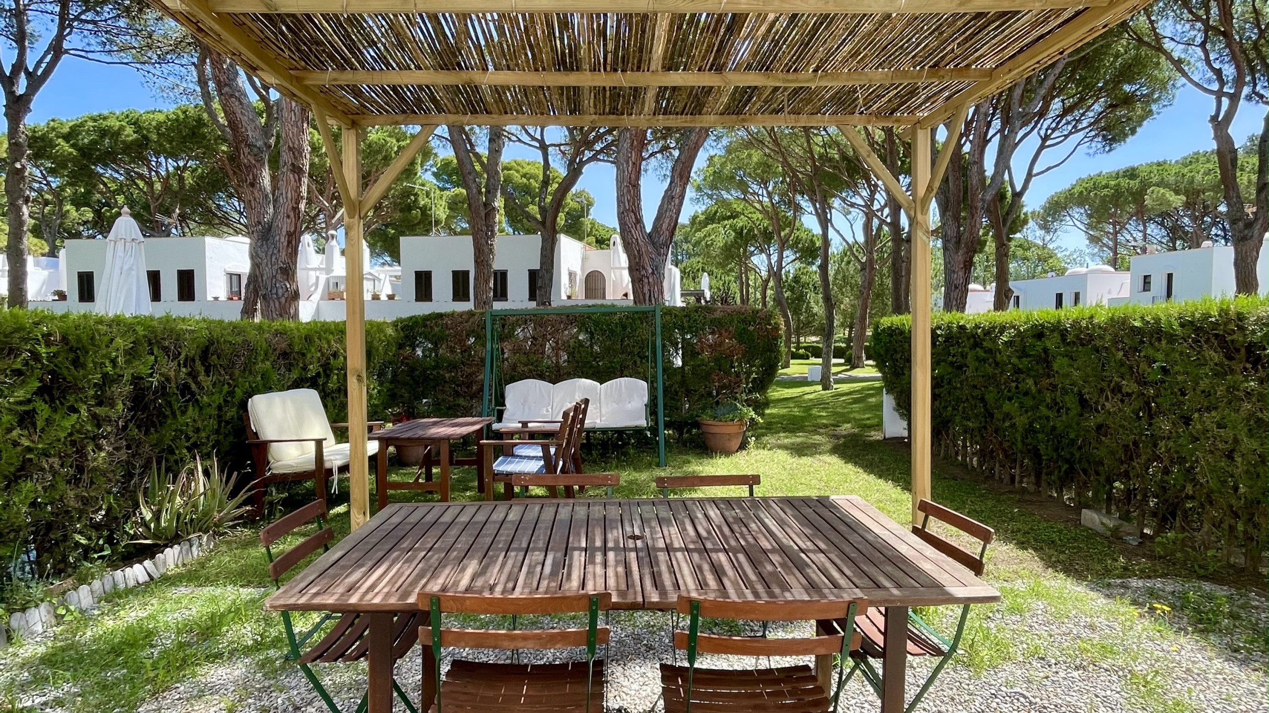 Benvingut a Pinoverde del Golf! La nostra casa de vacances està situada en un complex residencial tranquil i familiar, envoltat de bonics jardins, amb accés a una piscina comunitària i una piscina infantil.