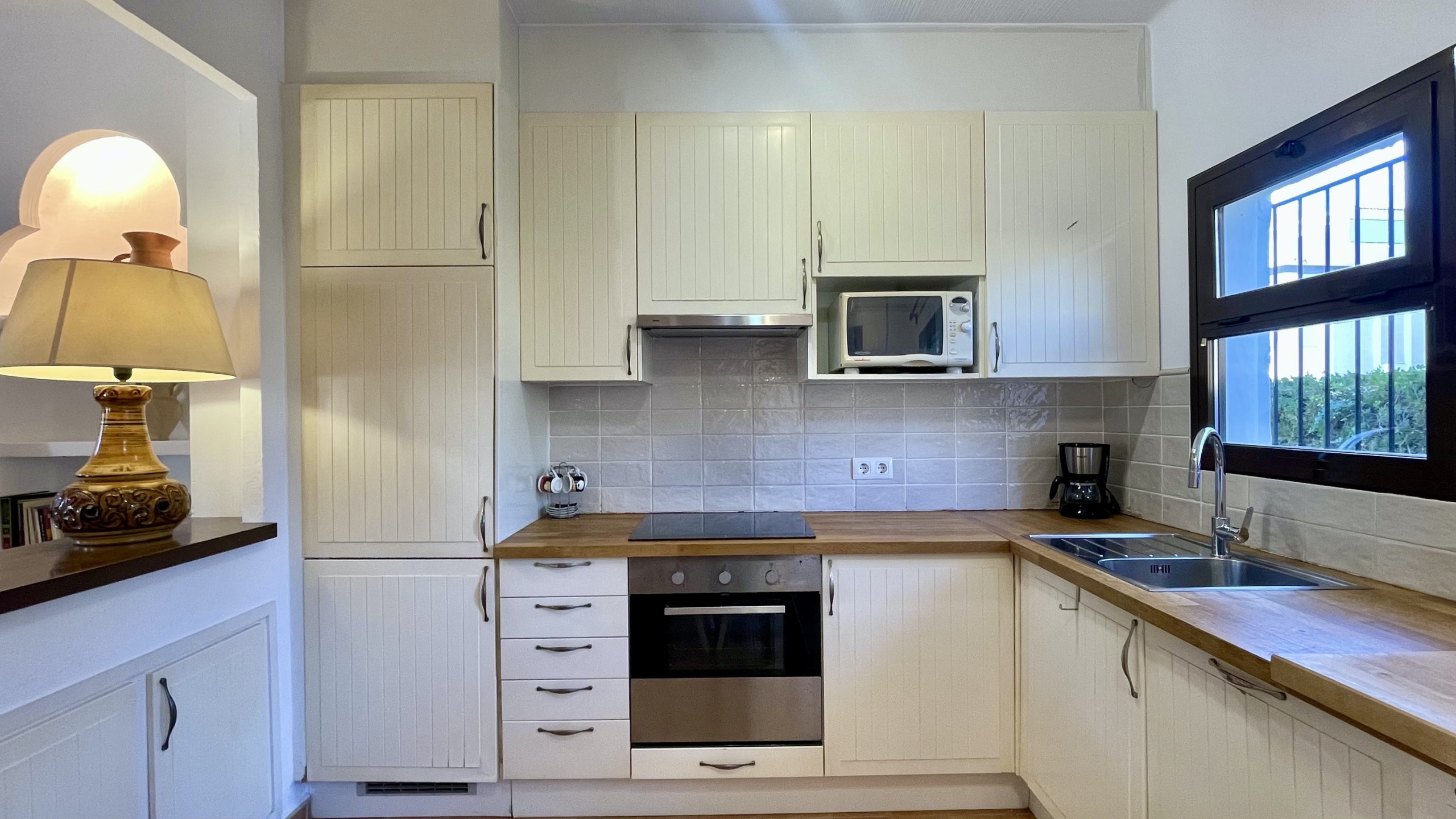 La cuina, està equipada amb nevera, microones, forn, congelador, rentadora, vaixella/coberteria, estris/cuina, cafetera i torradora.