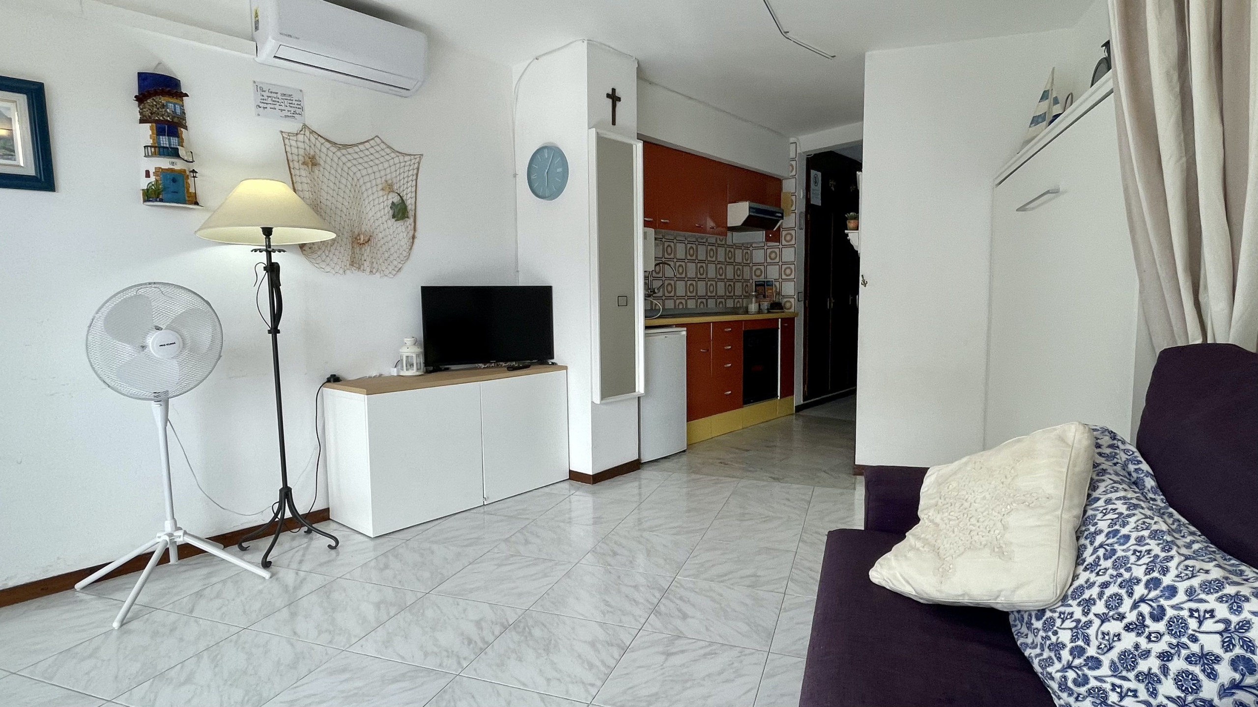 L'estudi està equipat amb cura, amb accés per ascensor, terrassa amb mobles, piscina comunitària + infantil envoltada d'un jardí verd i TV. Es podria proporcionar Internet segons disponibilitat (10€/dia).