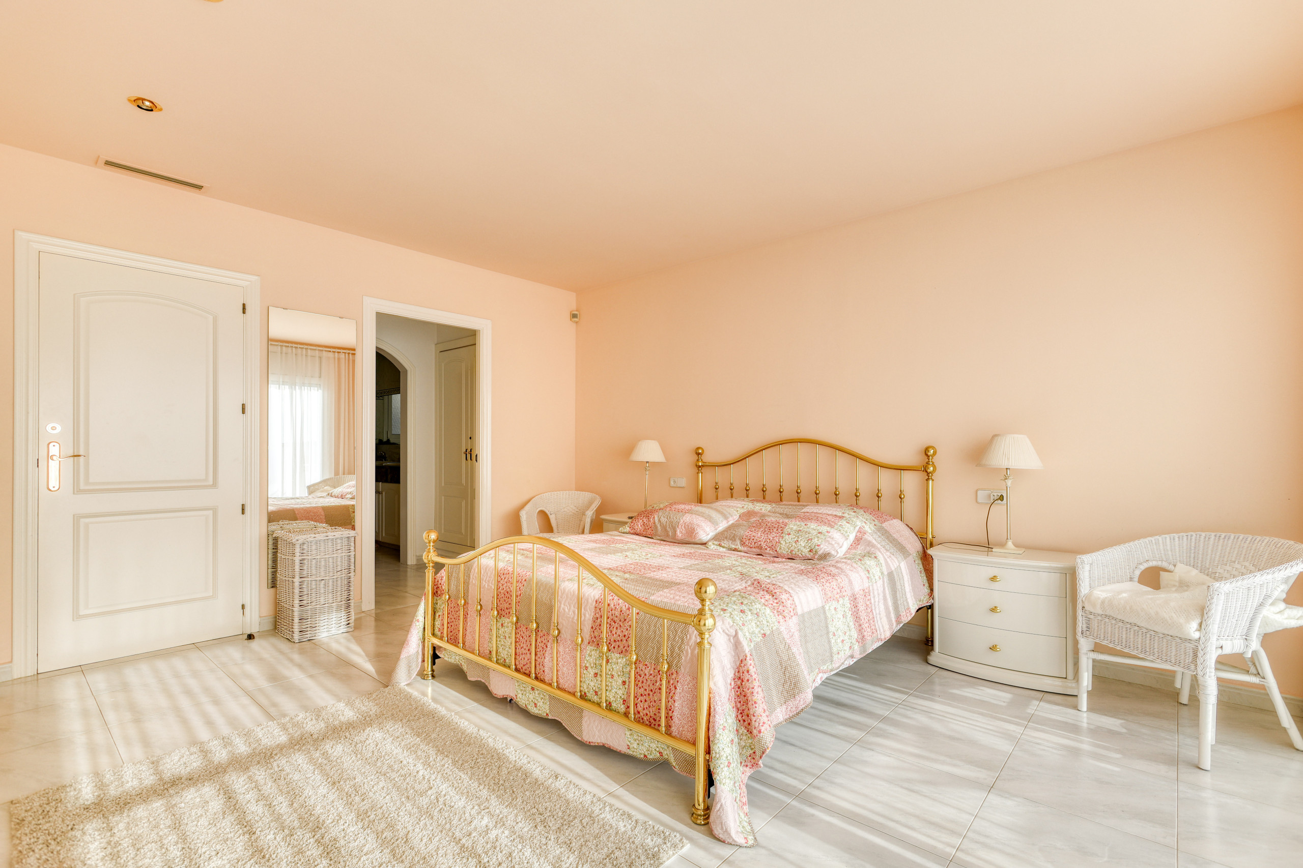 Disposa de tres habitacions dobles elegantment decorades, tres banys complets i un gimnàs privat. A més, la casa inclou un garatge amb capacitat per a tres cotxes, assegurant comoditat i seguretat durant l\'estada.