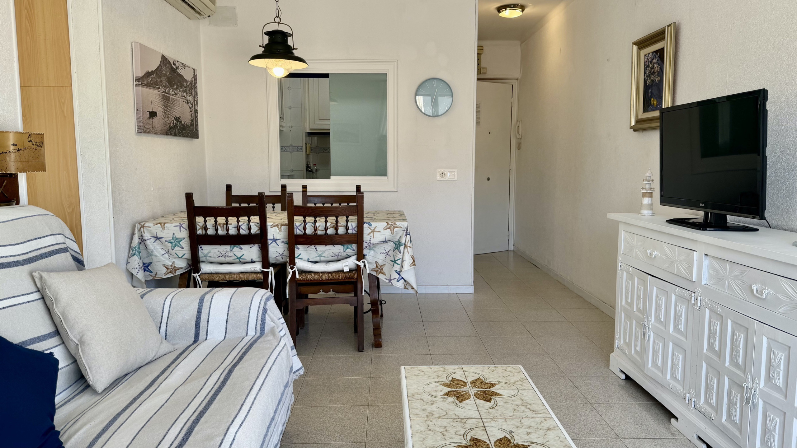 Die Wohnung verfügt über 3 gut verteilte Schlafzimmer: ein Schlafzimmer mit Doppelbett und zwei Schlafzimmer mit Einzelbetten, die einen komfortablen Schlaf für alle Gäste gewährleisten. Es gibt ein vollständiges Badezimmer mit Badewanne, perfekt zum Entspannen nach einem Tag am Strand.