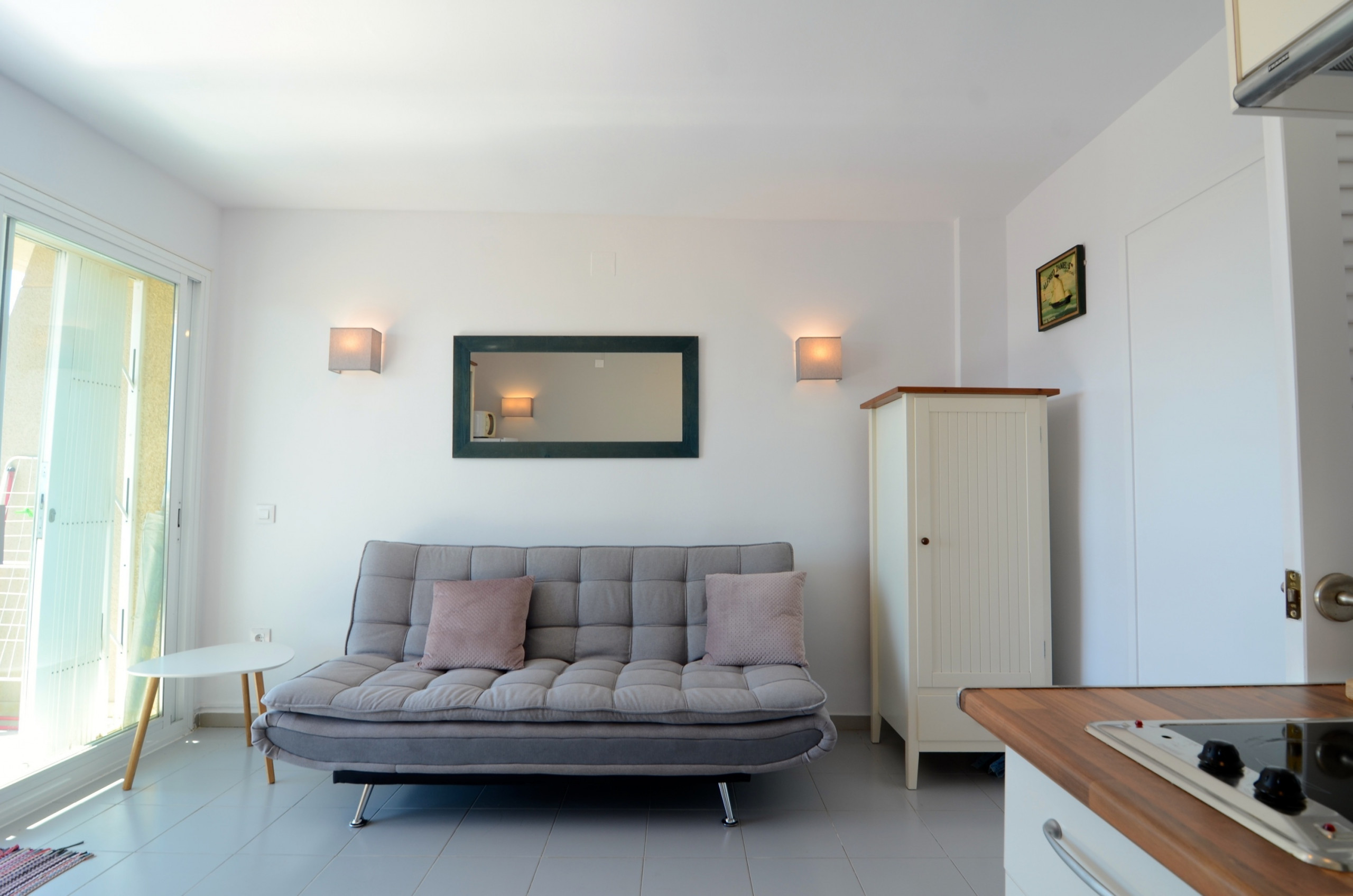 In der Anlage Rocamaura steht diese Ein-Zimmer-Wohnung für Ferienvermietung zur Verfügung. Sie verfügt über ein Doppelstockbett und ein Einzelbett und bietet Platz für bis zu 3 Personen. Die Wohnung umfasst ein Wohn-Esszimmer mit Sofa und Fernseher, eine kleine separate Küche und ein Badezimmer mit Dusche.