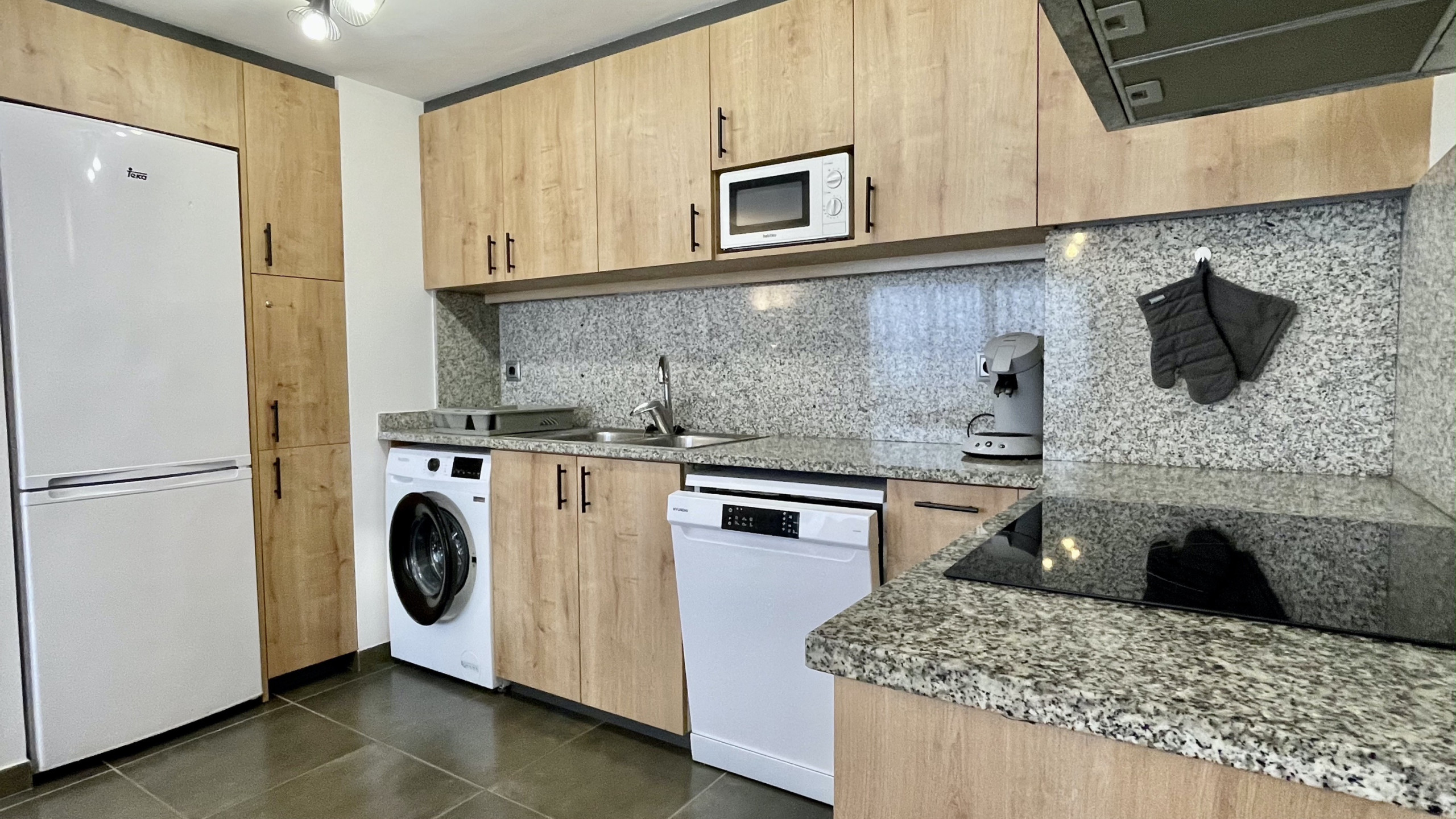 Ein großer Pluspunkt ist der private, überdachte Parkplatz im selben Gebäude, der die An- und Abreise mit Gepäck oder für Ausflüge erheblich erleichtert. Die Zone verfügt über Klimaanlage, um während der heißesten Tage eine angenehme Atmosphäre zu erhalten, und eine voll ausgestattete amerikanische Küche mit modernen Haushaltsgeräten wie Geschirrspüler, Ofen, Mikrowelle und Kaffeemaschine.