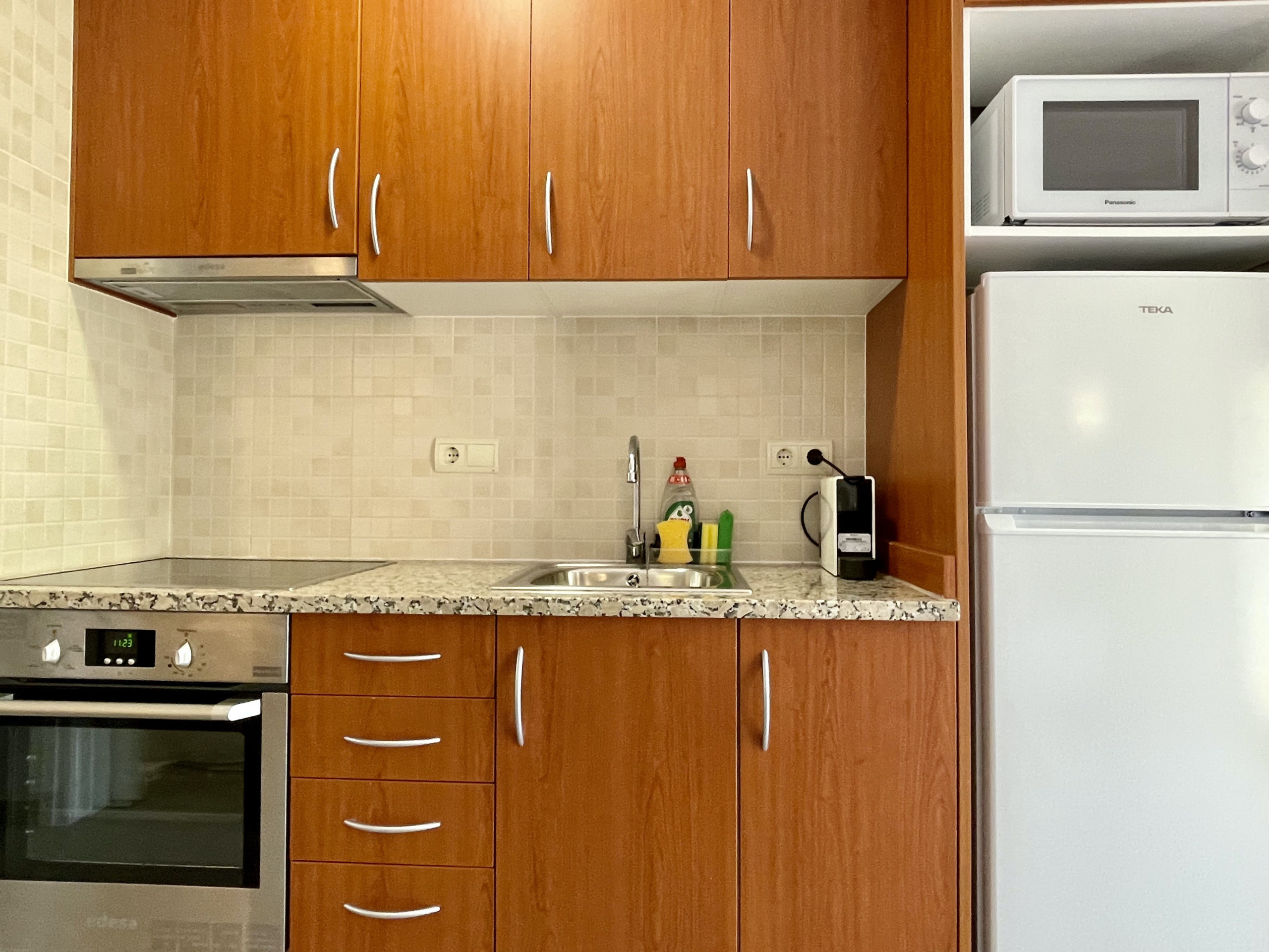 Die Wohnung ist mit allen Annehmlichkeiten ausgestattet, die Sie benötigen. Das Wohnzimmer verfügt über eine Klimaanlage, um Ihnen zu jeder Jahreszeit einen angenehmen Aufenthalt zu ermöglichen. Die amerikanische Küche ist mit einem Keramikkochfeld, einem Kühlschrank, einer Mikrowelle, einem Backofen, einem Gefrierschrank, einer Waschmaschine, einer Kaffeemaschine, einem Toaster und einer Saftpresse ausgestattet, sodass Sie Ihre Lieblingsgerichte mühelos zubereiten können.