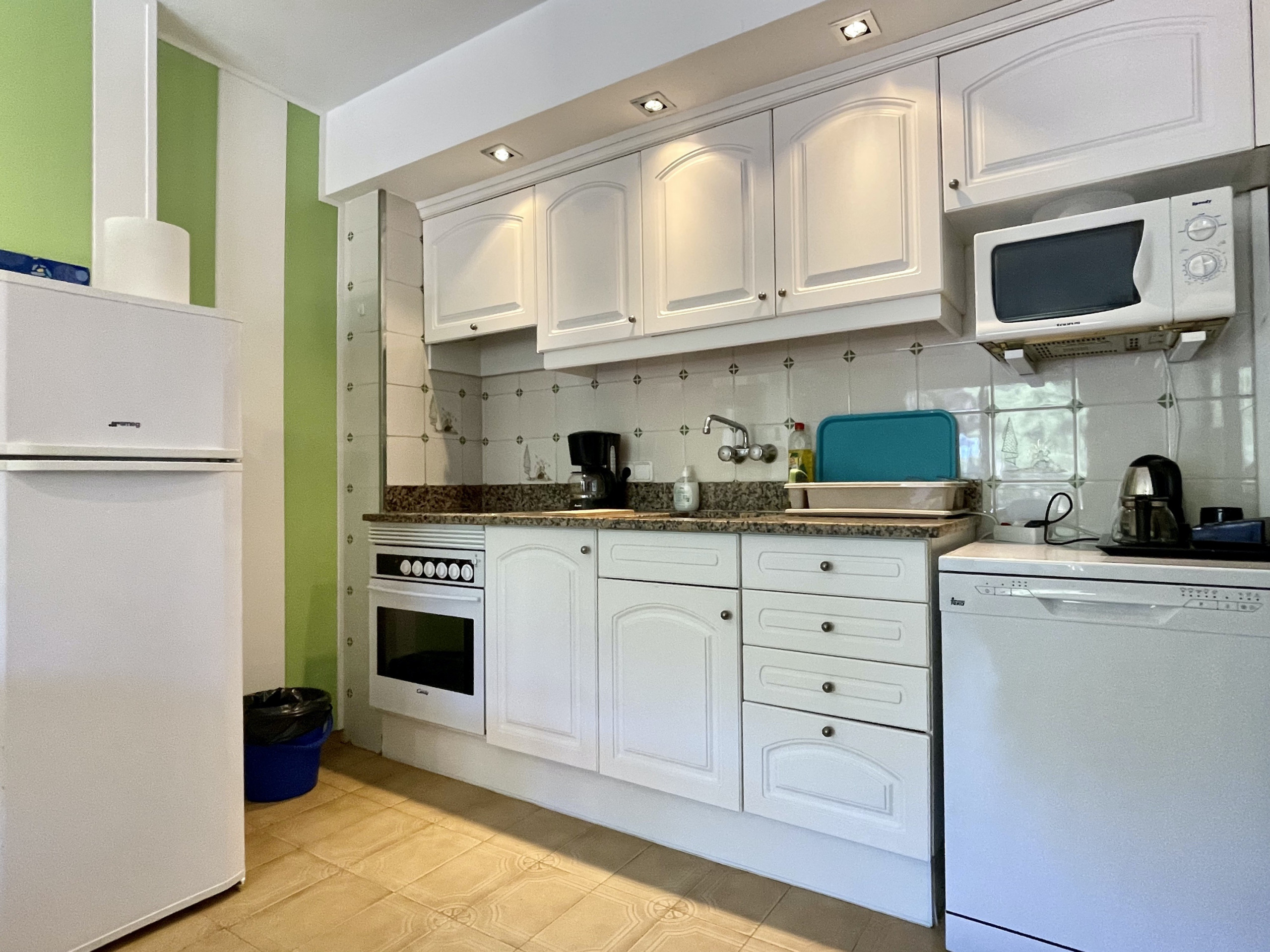 In der Anlage Rocamaura steht diese Ein-Zimmer-Wohnung für Ferienvermietung zur Verfügung. Sie verfügt über ein Doppelstockbett und ein Einzelbett und bietet Platz für bis zu 3 Personen. Die Wohnung umfasst ein Wohn-Esszimmer mit Sofa und Fernseher, eine kleine separate Küche und ein Badezimmer mit Dusche.