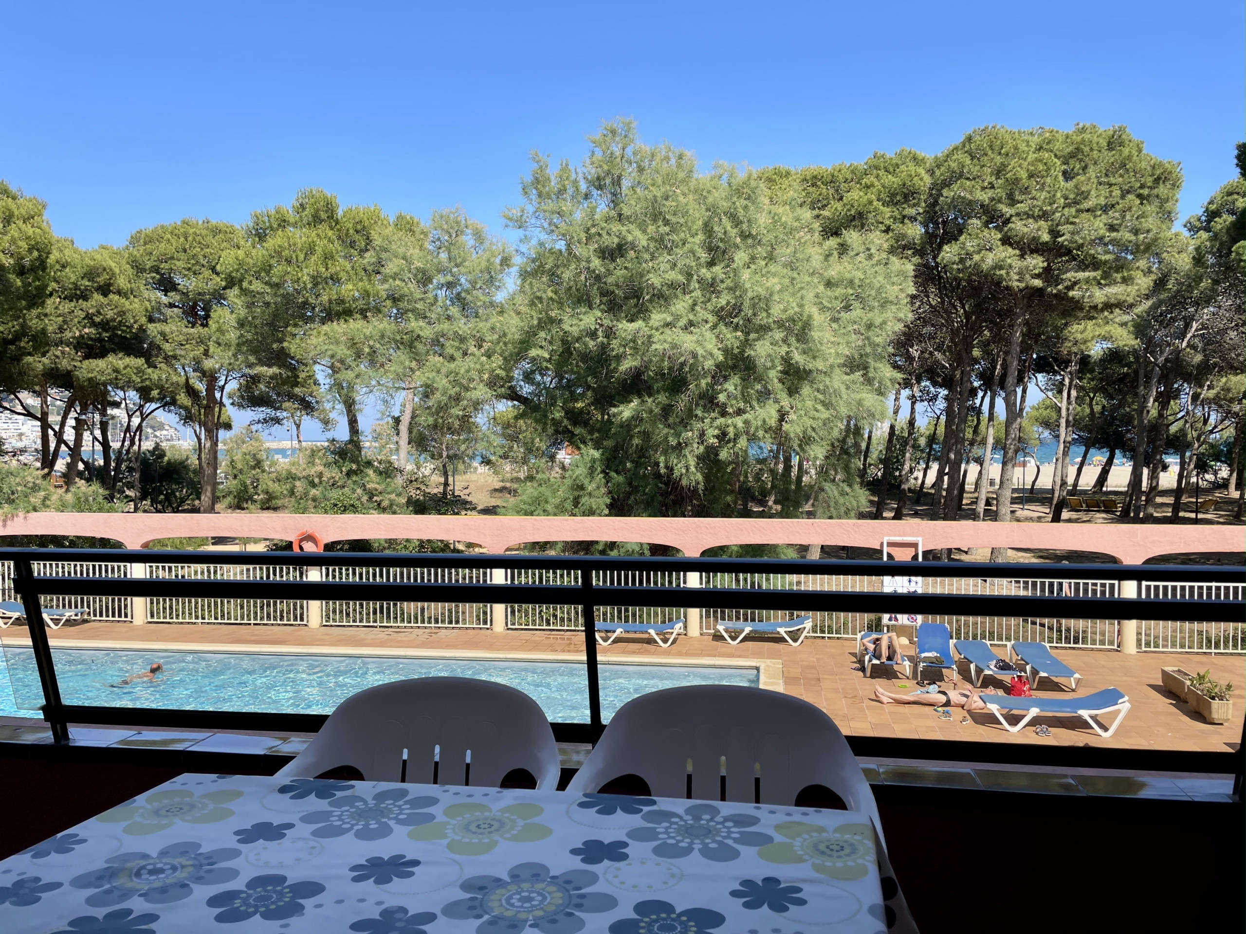 Ein-Zimmer-Wohnung mit spektakulärem Blick auf den Pool.