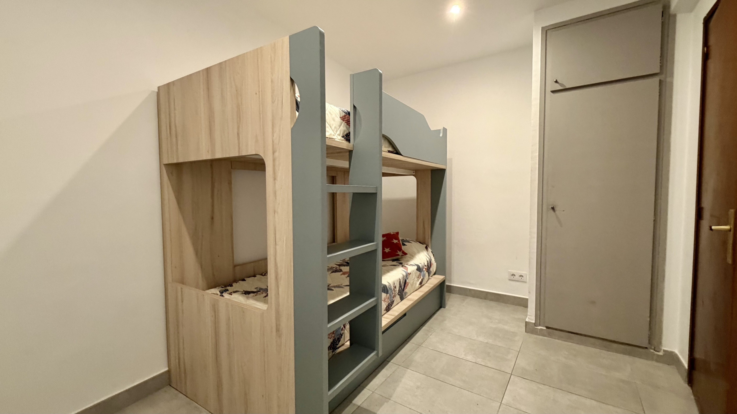 Die Wohnung verfügt über ein Schlafzimmer mit drei Betten: einem Etagenbett, einem Doppelbett und einem Doppelschlafsofa, ideal für Familien oder kleine Gruppen. Es gibt ein einziges Badezimmer mit Dusche, was Komfort während des Aufenthalts gewährleistet.
