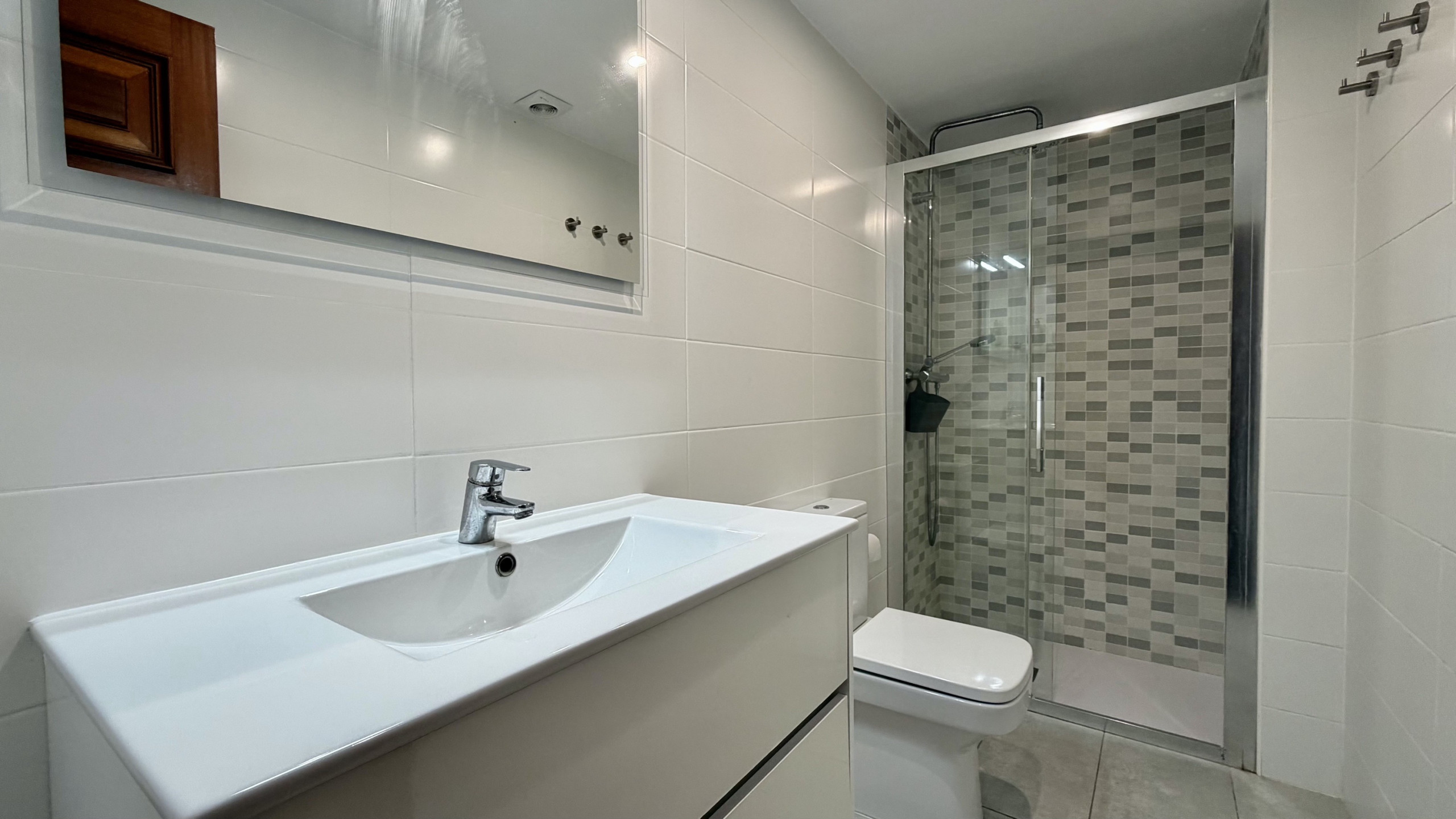 Die Wohnung verfügt über 2 Schlafzimmer, ausgestattet mit 1 Doppelbett, 2 Einzelbetten und einem Schlafsofa, die einen komfortablen Schlaf für alle Gäste gewährleisten. Es gibt ein einziges Badezimmer mit Dusche, das vollständig funktional für die Bedürfnisse der Gruppe ist.