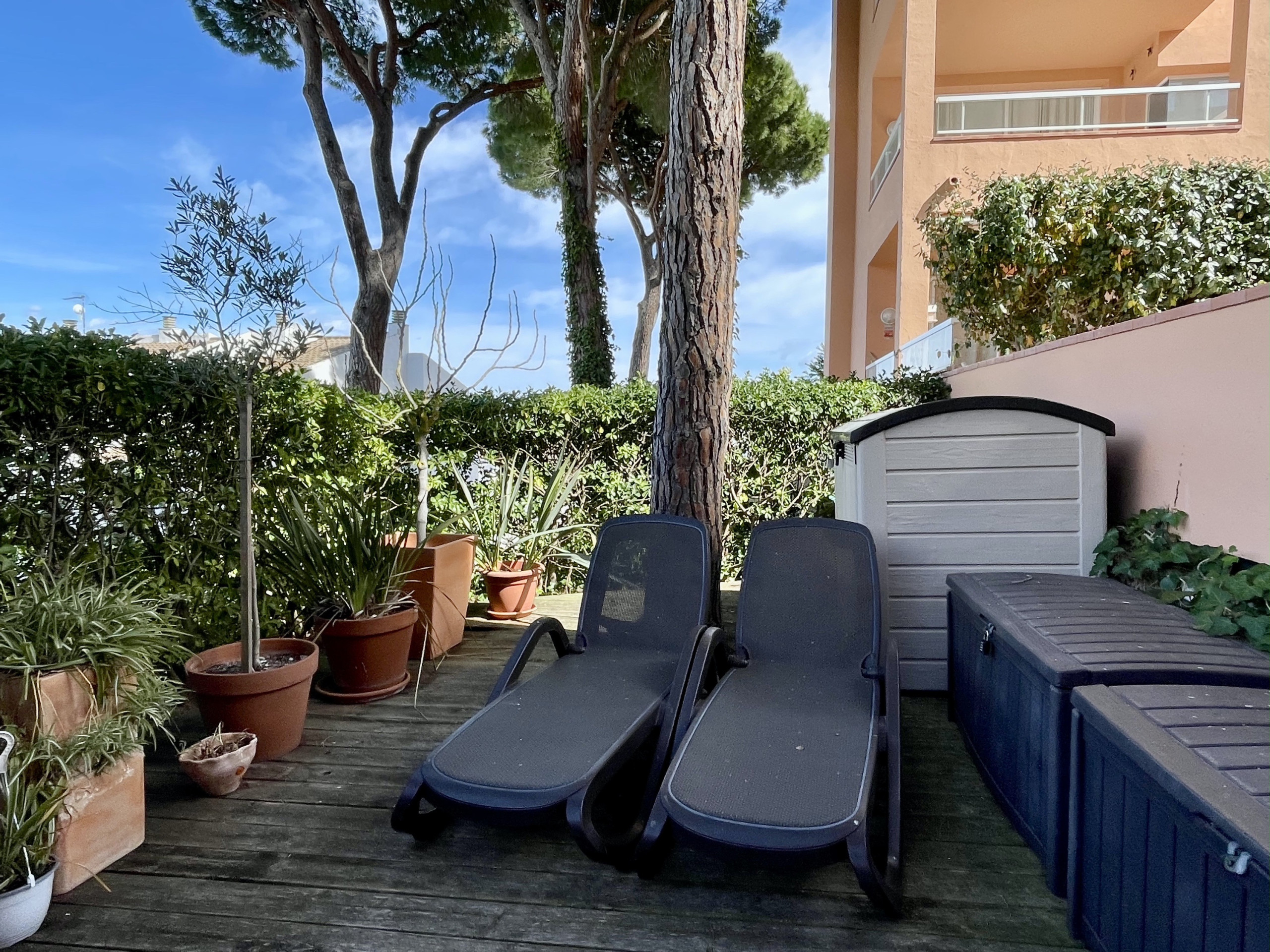 Die Unterkunft verfügt über einen Garten und eine Terrasse, die ideal sind, um sich im Freien zu entspannen. Darüber hinaus ist sie mit allen notwendigen Annehmlichkeiten ausgestattet: Klimaanlage, Internetzugang (WLAN), Waschmaschine, Bügeleisen und Fernseher. Die Gäste können auch den Gemeinschaftspool und den überdachten Parkplatz im selben Gebäude genießen.
