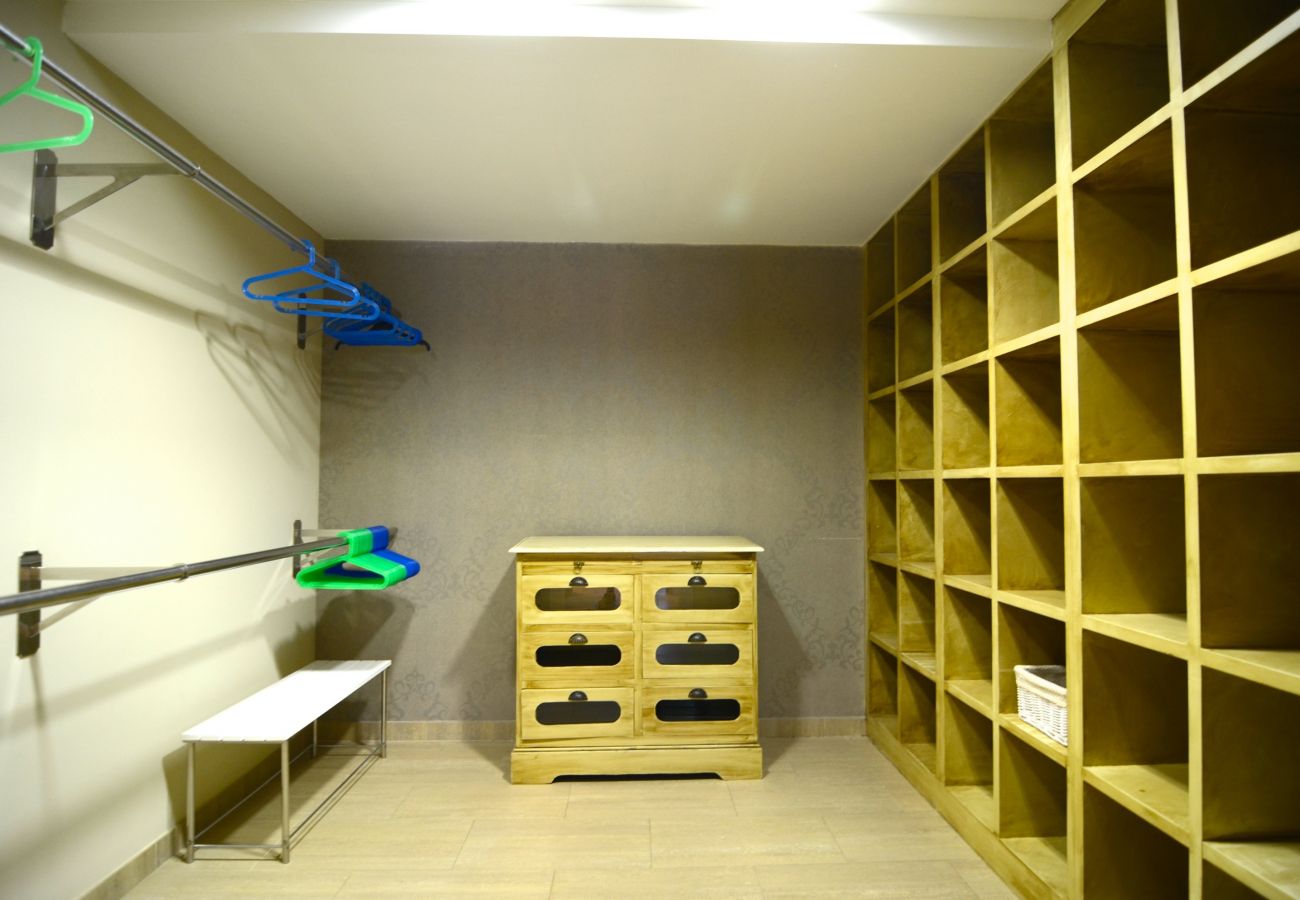 Im Erdgeschoss gibt es eine große Suite mit Ankleide und Badezimmer mit Whirlpool und Dusche, zwei zimmer mit Ankleide und Badezimmer, großes Wohnzimmer, Küche und Waschküche. Im ersten Stock gibt es zwei Doppelzimmer und ein Spielzimmer für Kinder.