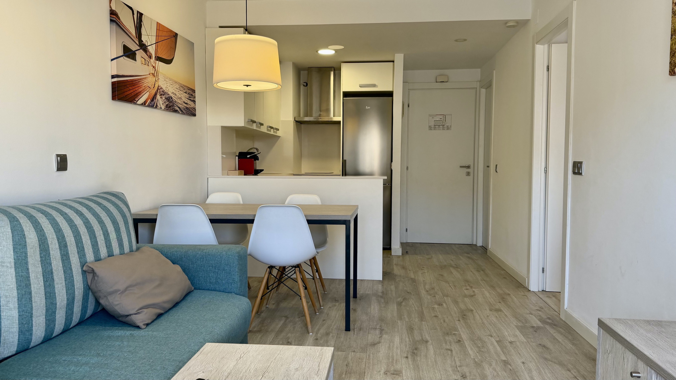 In het Rocamaura-complex wordt dit appartement met één slaapkamer te huur aangeboden voor vakanties, met een stapelbed en een eenpersoonsbed, geschikt voor 3 personen. Het heeft een woon-eetkamer met een bank en tv, een kleine aparte keuken en een badkamer met douche.