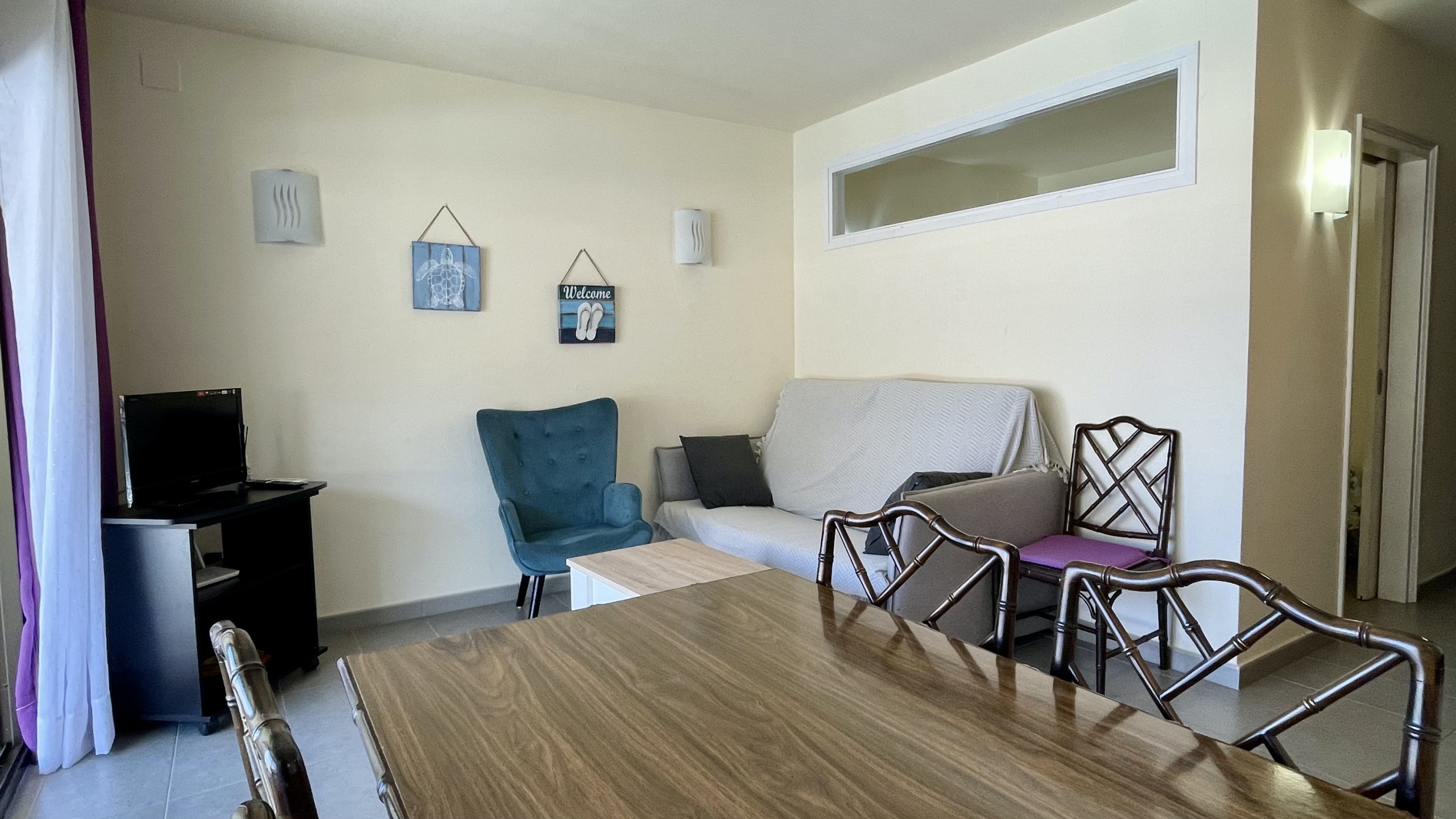 En wat dit appartement nog specialer maakt, is de schaduwrijke tuin binnen het wooncomplex, die een serene plek biedt om te ontspannen en te genieten van rustige momenten tijdens je verblijf.