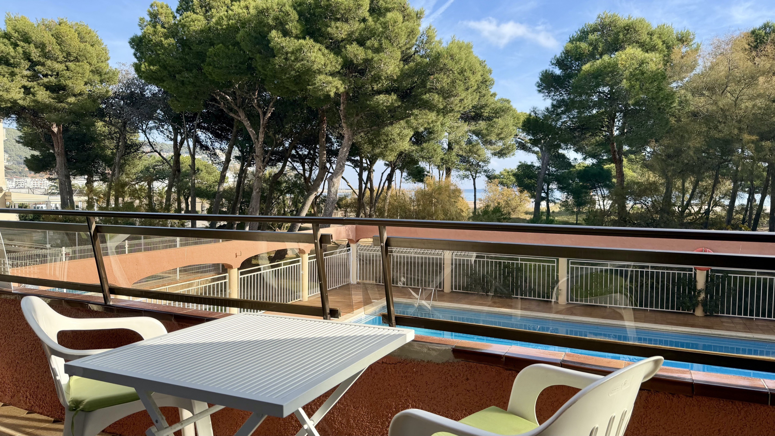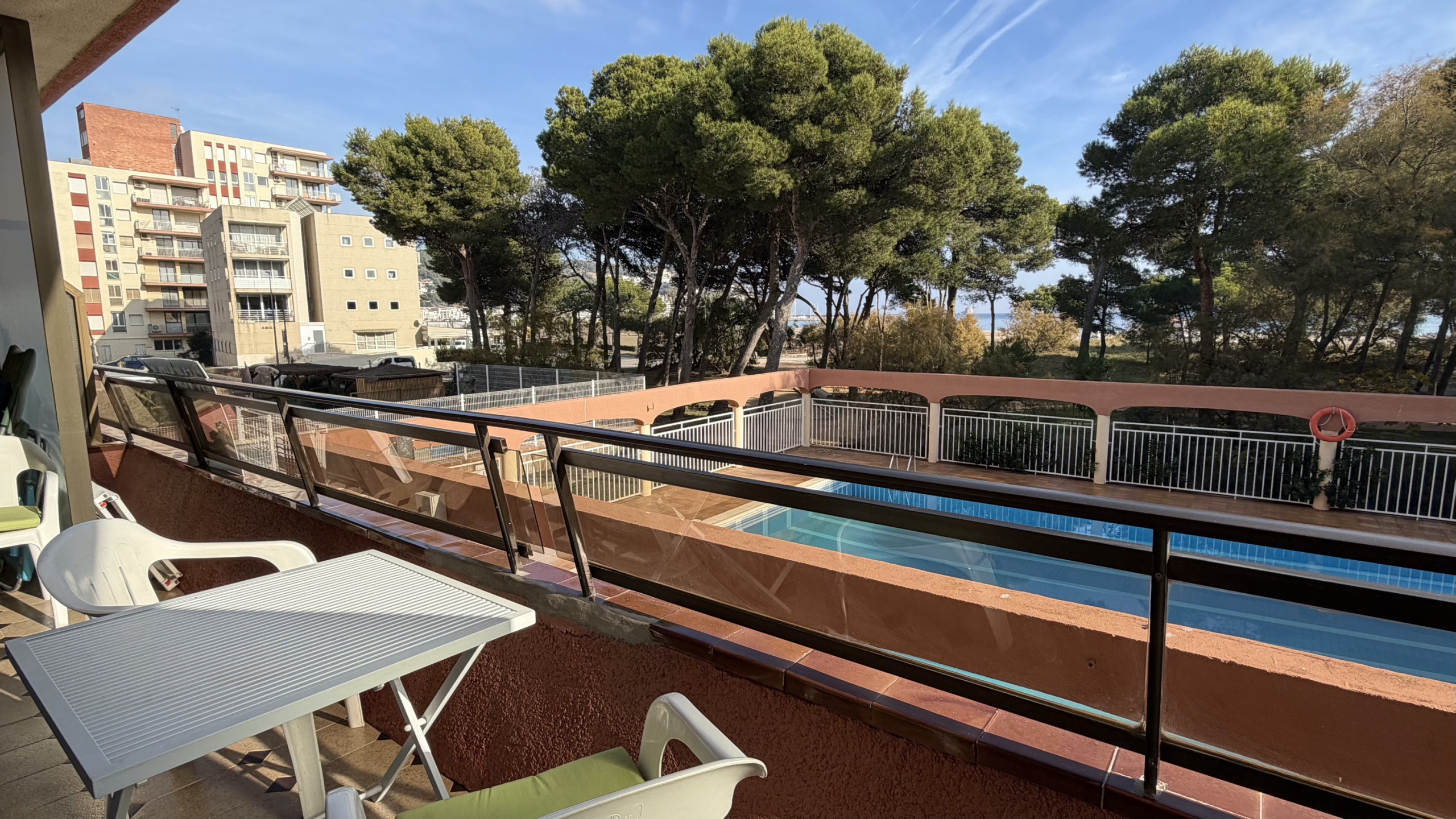 Het appartement heeft een groot terras met een onovertroffen uitzicht op het hele Rocamaura-complex, met het zwembad aan je voeten en de Medes-eilanden op de achtergrond.