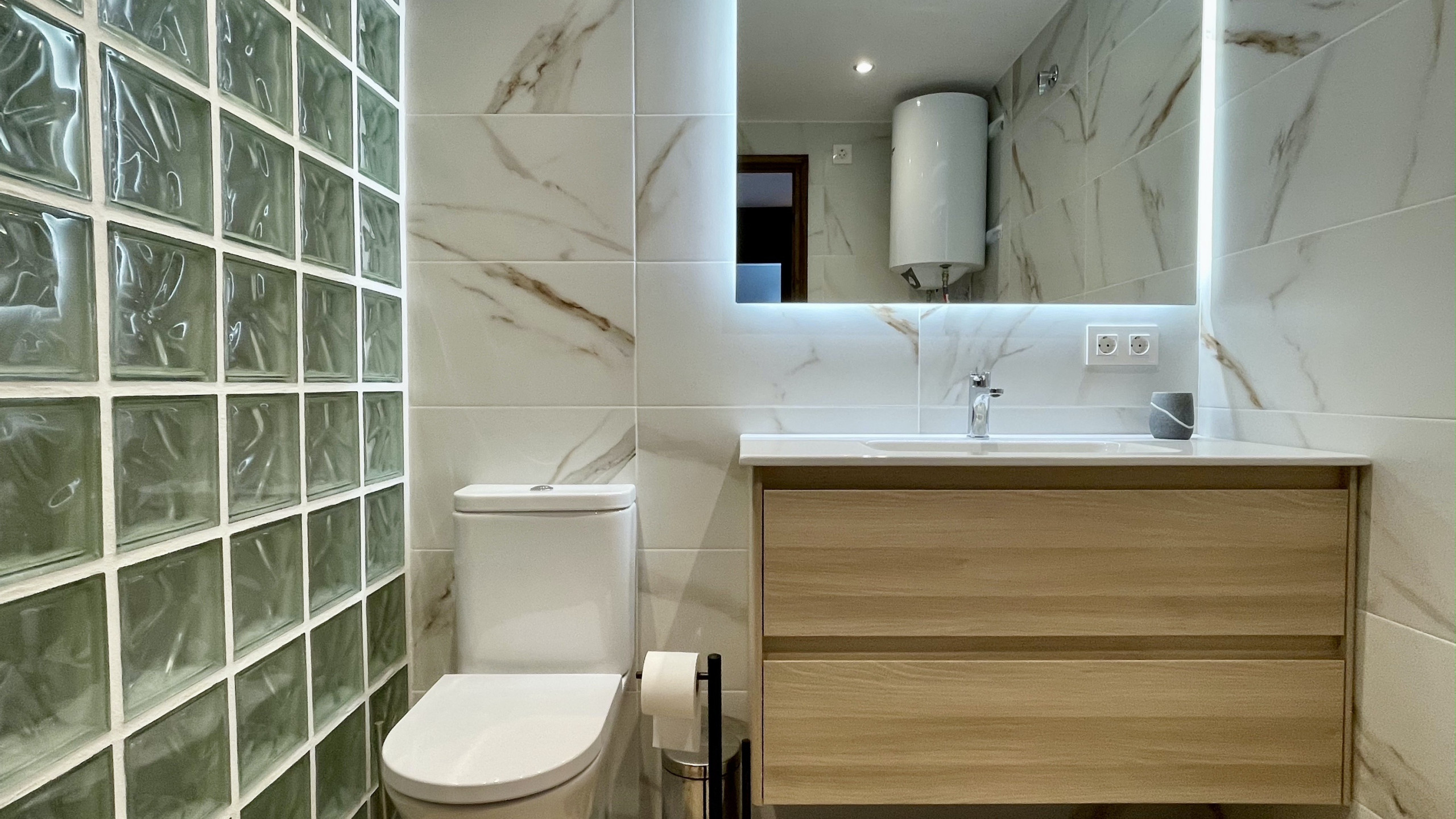 This cozy apartment is spread over two levels to offer you all the space and comfort you need. On the ground floor, you'll find a modern open kitchen, a bright living-dining room, and a relaxing terrace where you can enjoy the Mediterranean climate. Additionally, it features a cozy double bedroom and a full bathroom.