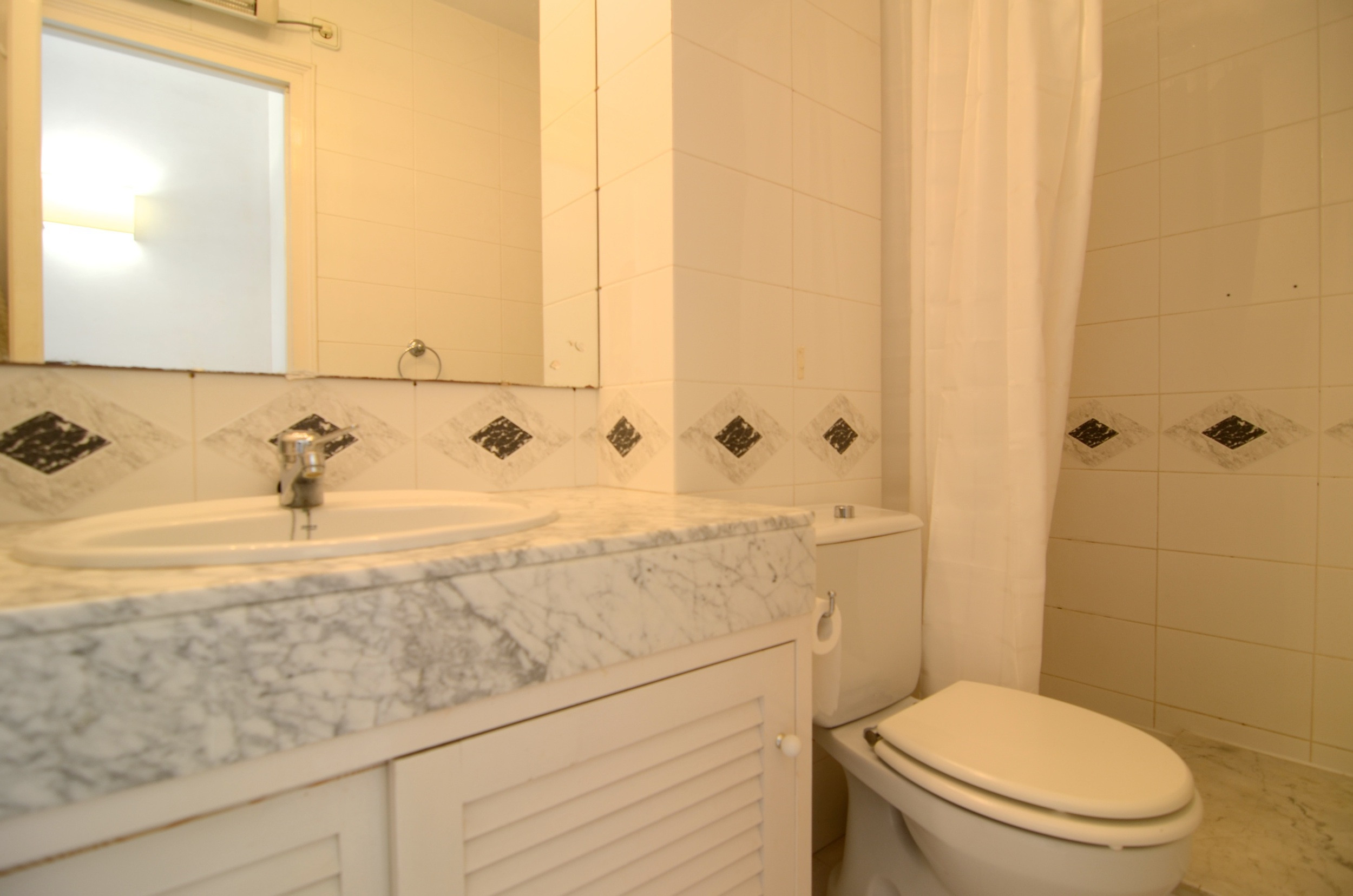 By some stairs we access the upper level of the duplex where we find the main bedroom with a large bathroom with bathtub and shower and a terrace with total privacy.