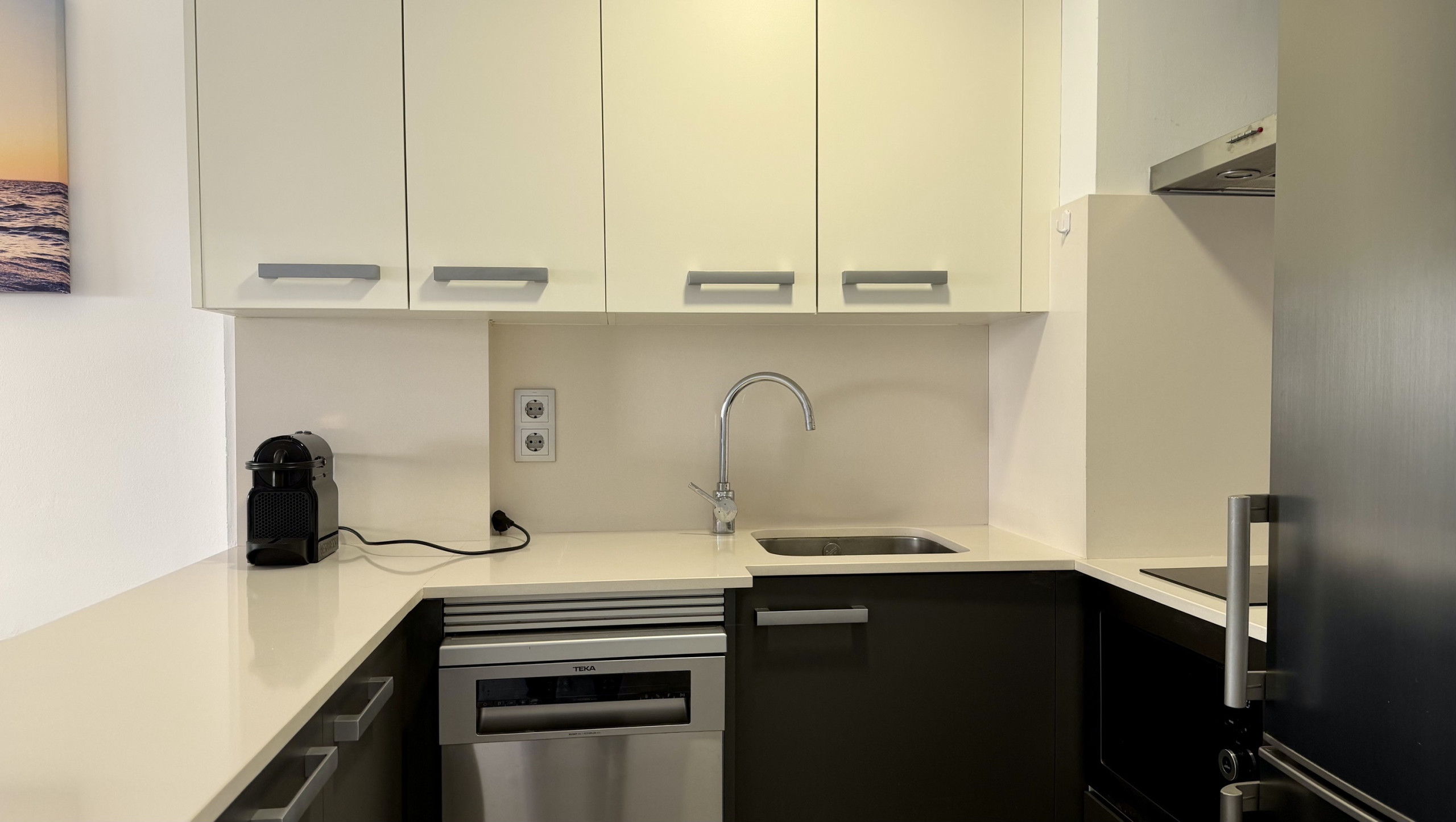 L'intérieur est conçu en pensant au confort, avec une chambre comprenant un lit double et deux lits individuels, idéal pour les petits groupes ou les familles. La cuisine américaine est entièrement équipée d'appareils électroménagers modernes tels que réfrigérateur, lave-linge, micro-ondes, lave-vaisselle et machine à café, vous permettant de préparer de délicieux repas.