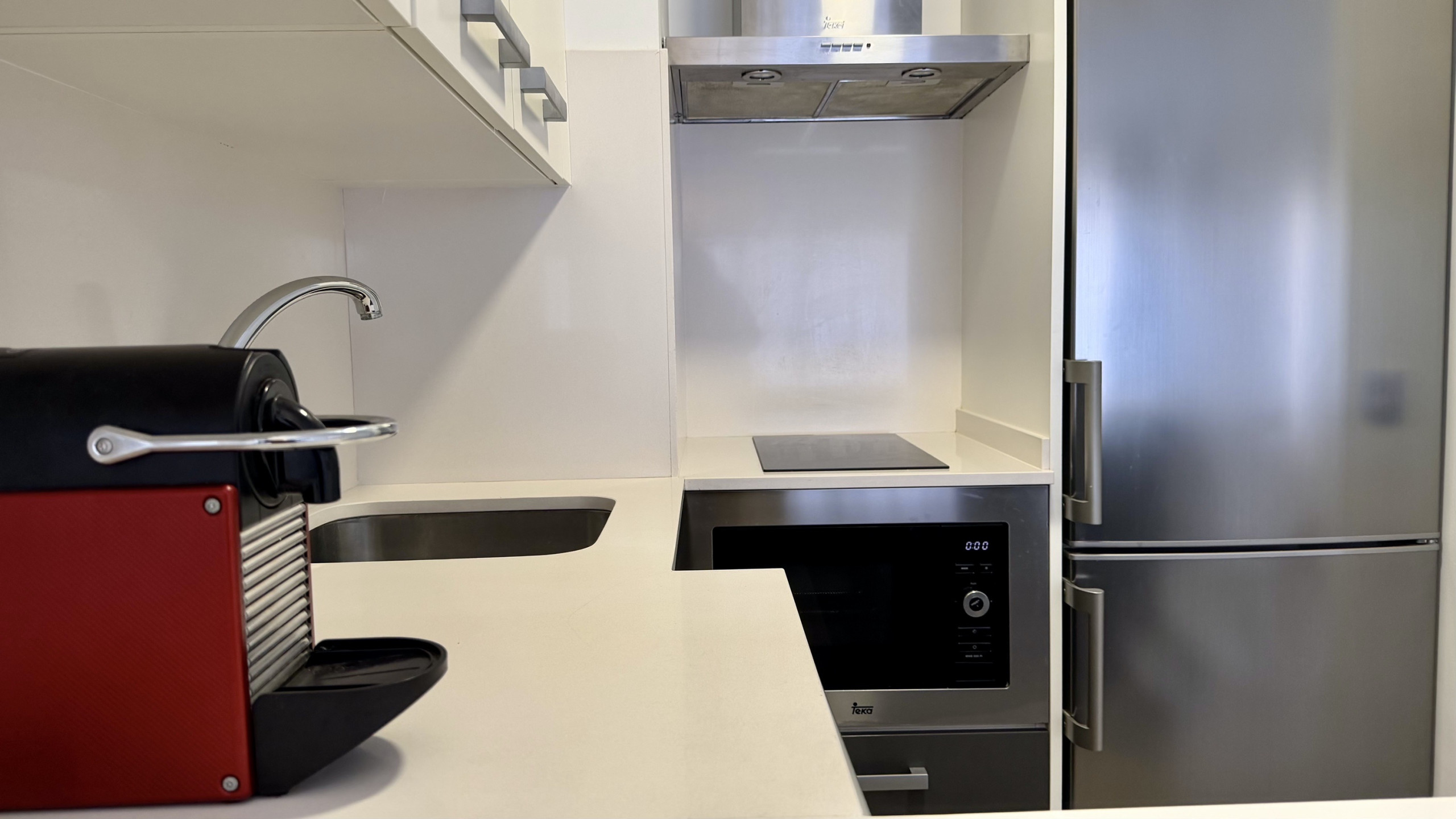 La cuisine américaine est entièrement équipée d'appareils électroménagers modernes tels que réfrigérateur, machine à laver, four, micro-ondes, cafetière et grille-pain. Vous pourrez préparer de délicieux repas et profiter de moments intimes dans cet espace.