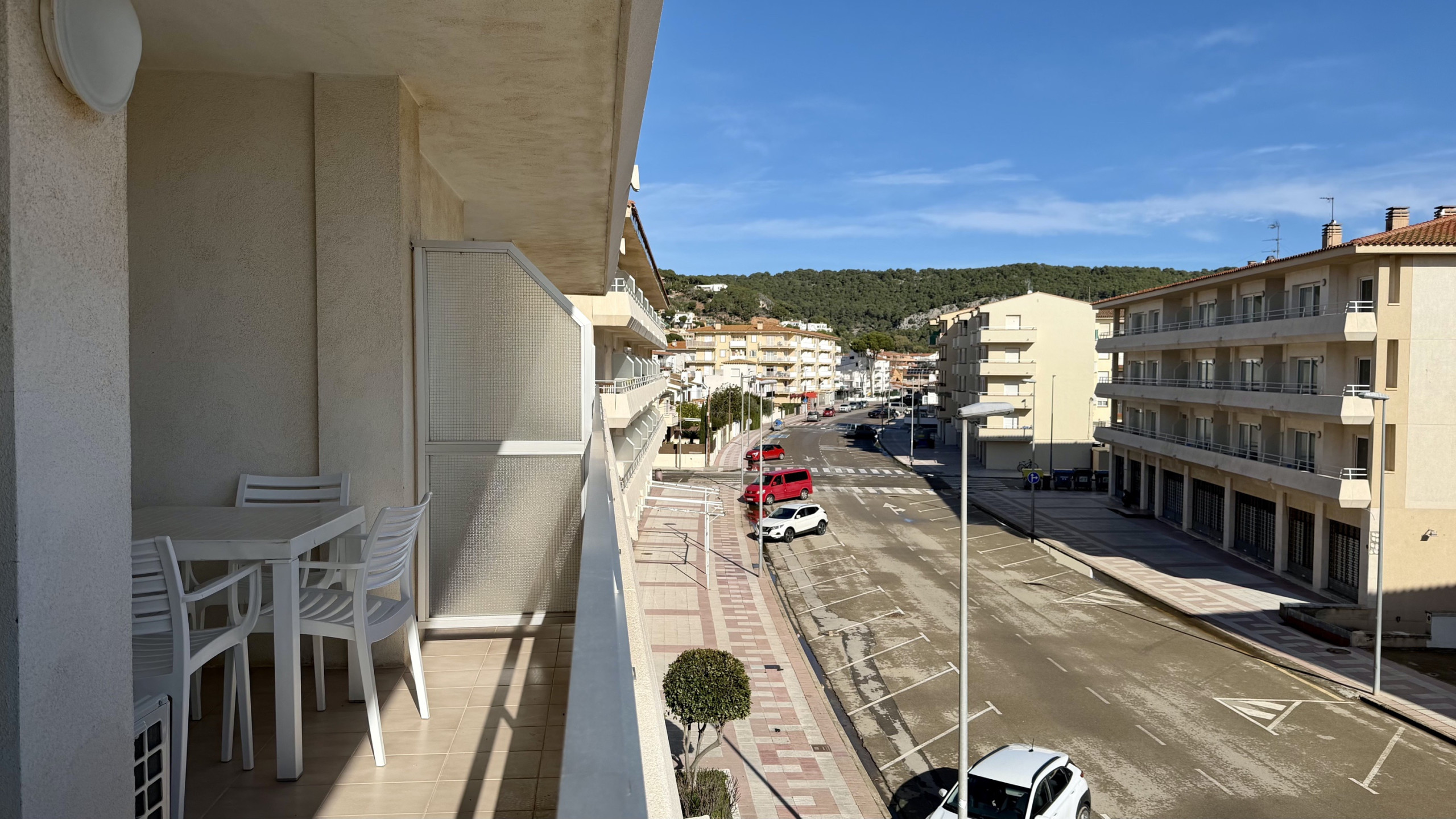 L'appartement dispose d'une grande terrasse avec une vue imprenable sur l'ensemble du complexe Rocamaura, avec la piscine à vos pieds et les îles Medes en arrière-plan.
