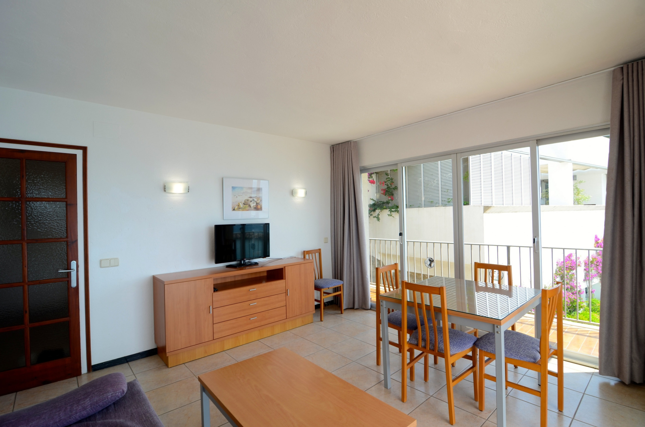 Dans le complexe Rocamaura, cet appartement d'une chambre est disponible à la location pour les vacances, avec un lit superposé double et un lit simple pouvant accueillir jusqu'à 3 personnes. Il comprend un salon-salle à manger avec un canapé et une télévision, une petite cuisine indépendante et une salle de bains avec douche.