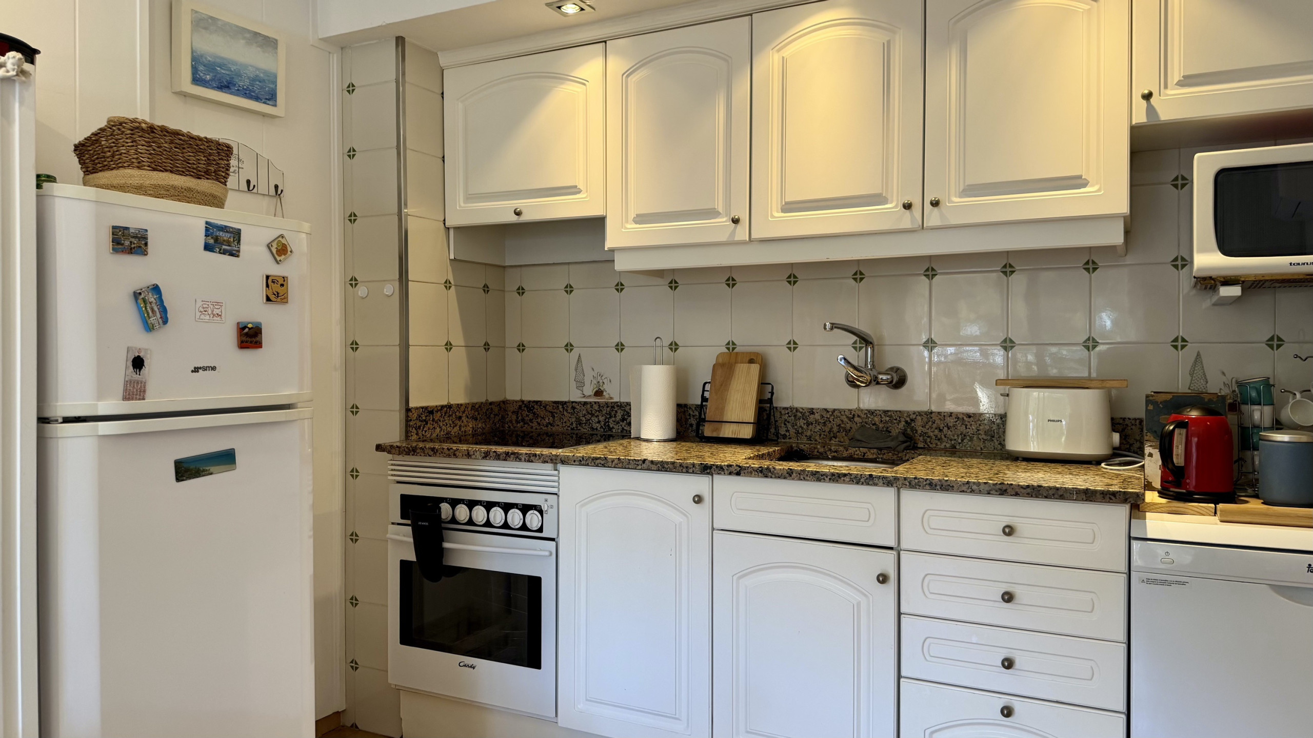 Dans le complexe Rocamaura, cet appartement d'une chambre est disponible à la location pour les vacances, avec un lit superposé double et un lit simple pouvant accueillir jusqu'à 3 personnes. Il comprend un salon-salle à manger avec un canapé et une télévision, une petite cuisine indépendante et une salle de bains avec douche.