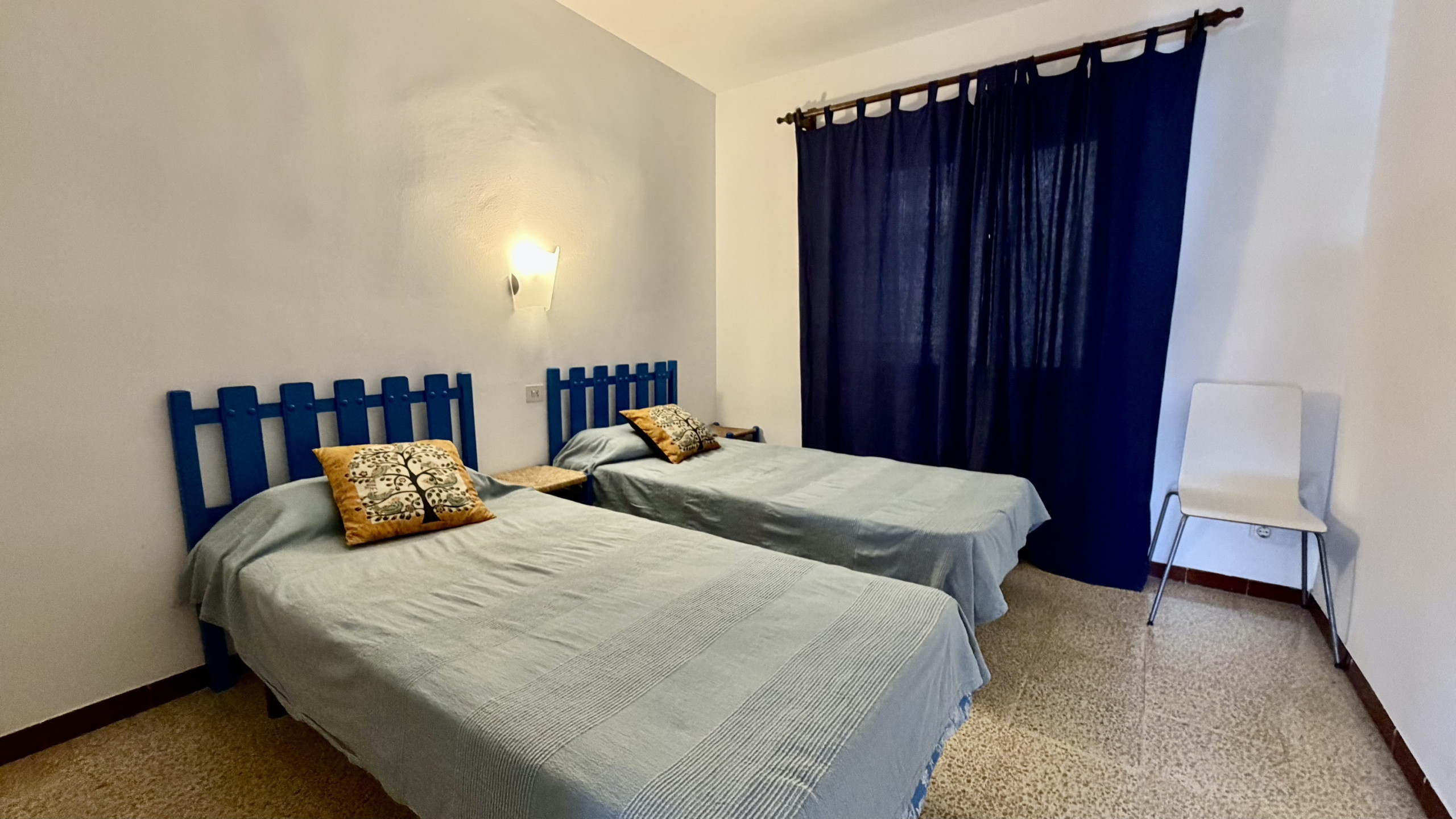 L'appartement dispose de 3 chambres équipées de 5 lits : 1 lit double et 4 lits individuels, idéal pour les groupes recherchant de la flexibilité pour le repos. Il comprend une salle de bain complète avec baignoire, parfaite pour se détendre après une journée à la plage.