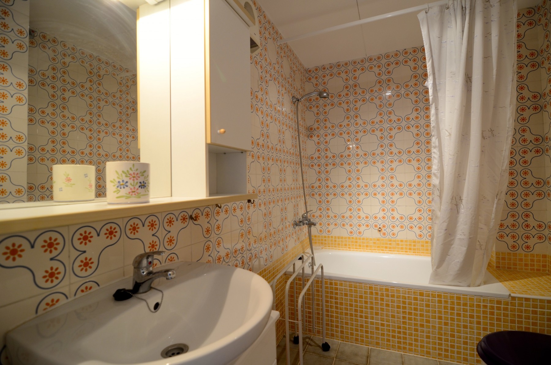 L'appartement dispose d'une chambre avec trois lits : un lit superposé, un lit double et un canapé-lit double, idéal pour les familles ou les petits groupes. Il comprend une seule salle de bain avec douche, ce qui garantit le confort pendant le séjour.