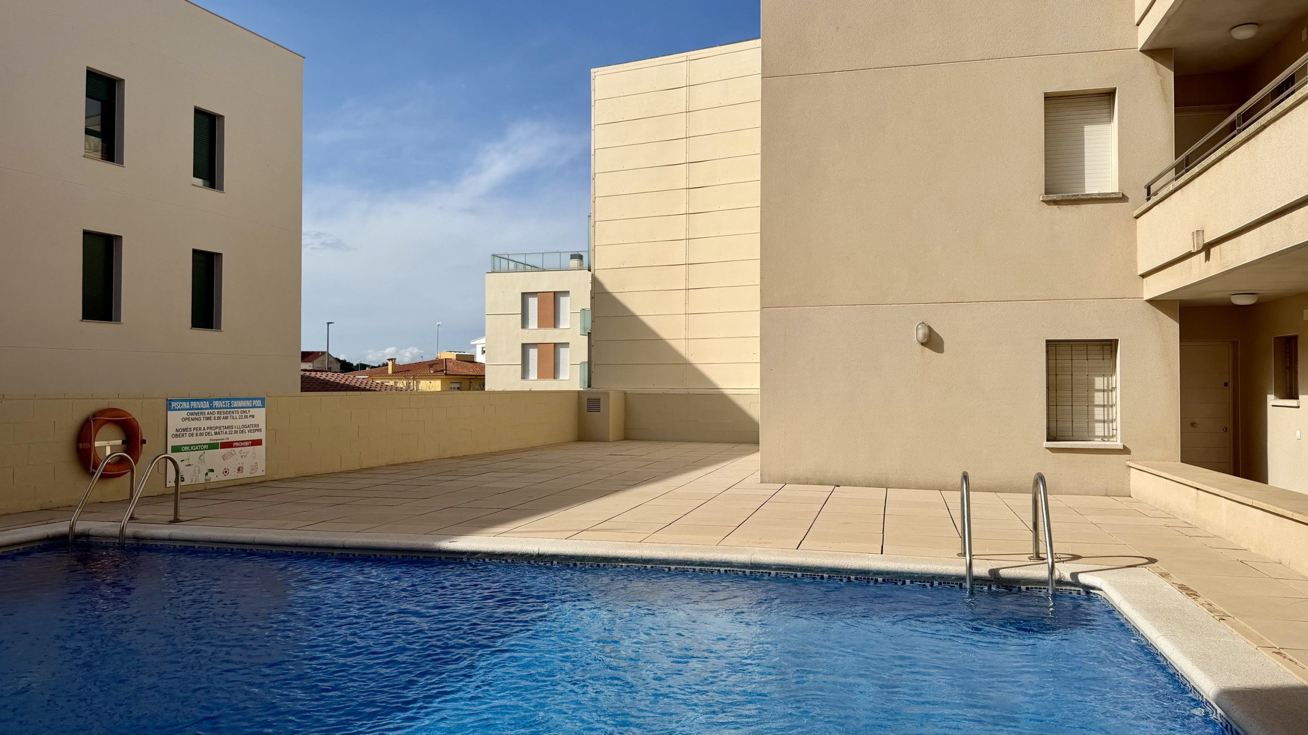 Situé dans un quartier résidentiel, l'appartement donne accès à une piscine commune offrant une vue imprenable. À seulement 600 mètres, vous trouverez la plage de sable et un supermarché, ce qui vous permettra de vous déplacer facilement et de faire du shopping. L'appartement dispose du WiFi pour vous permettre de rester connecté et d'un fer à repasser pour votre confort.