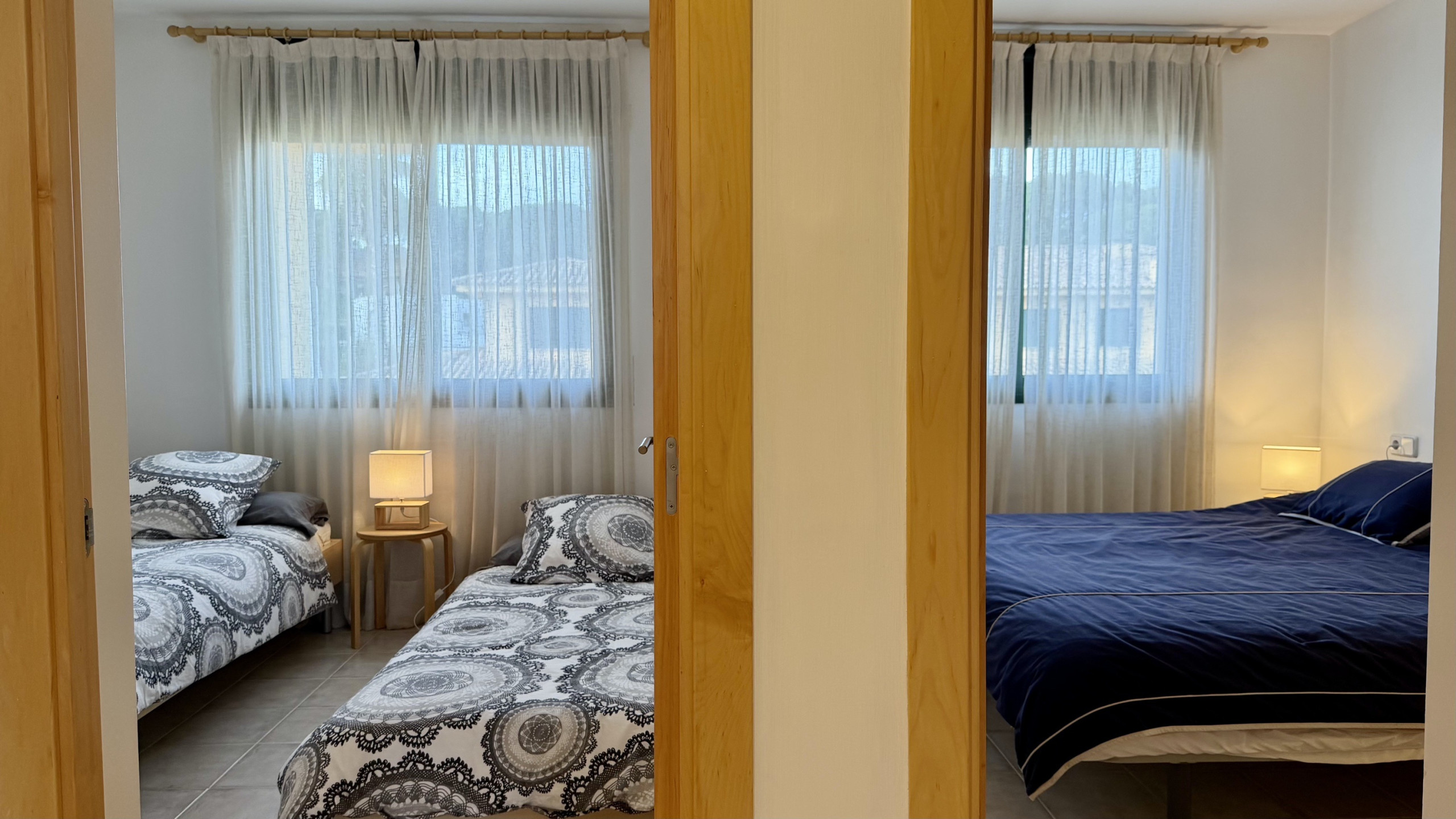 La maison dispose de 3 chambres bien réparties : une chambre principale avec un lit double et deux chambres supplémentaires avec des lits individuels, garantissant un repos réparateur pour tous les membres de la famille.